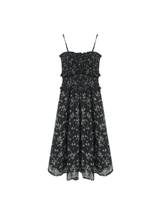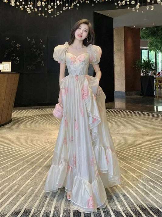 Vintage French Elegant Floral Ruffles Party Dresses Women Fashion Puff Sleeve Birthday A Line Princess Long Dress Sweet Vestidos