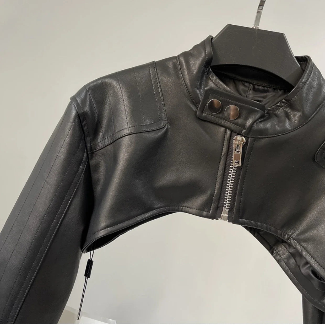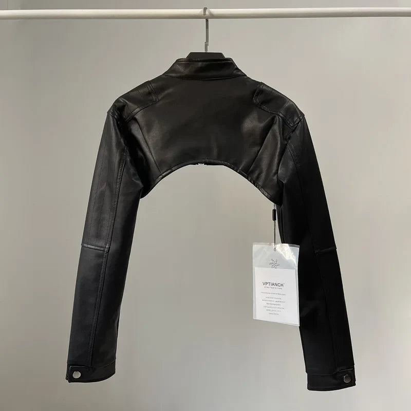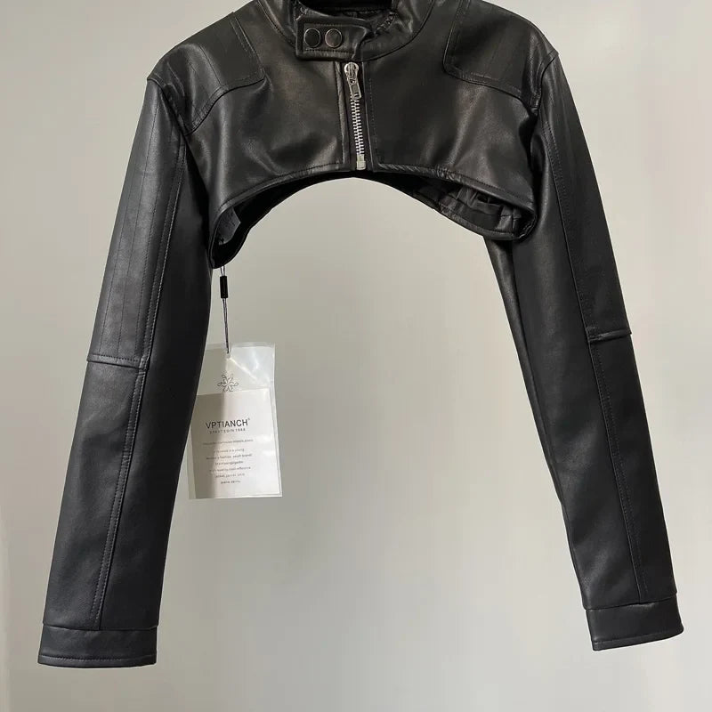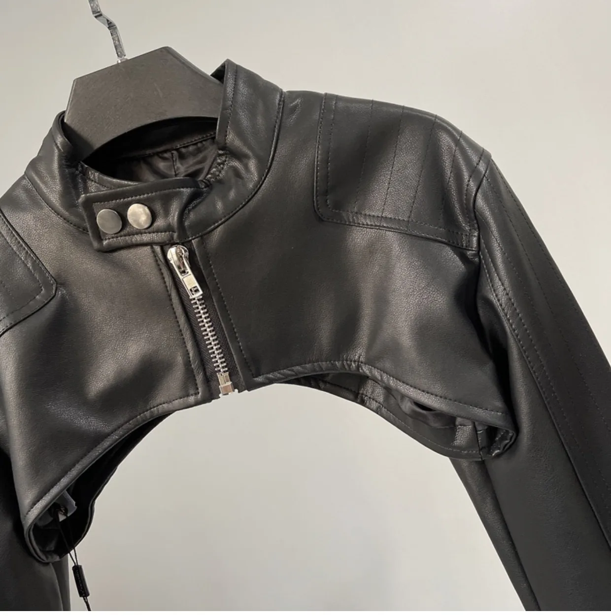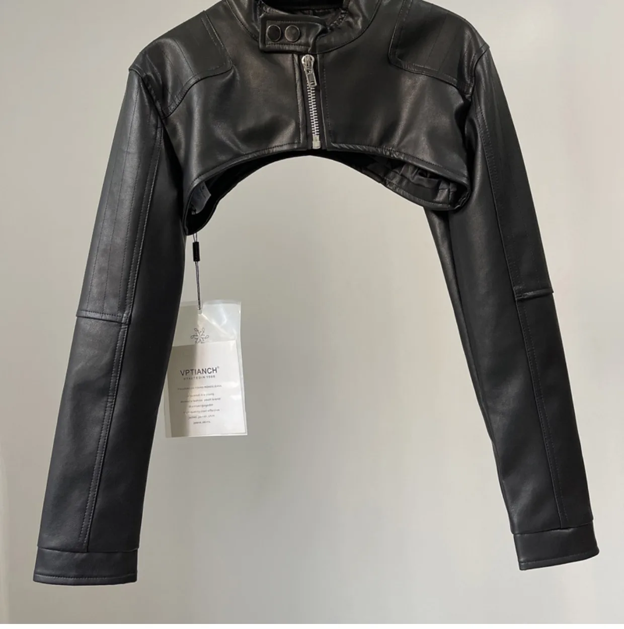 2024 women PU Chic Vintage Black Faux Leather Zipper Zip Up Coat Biker Jacket Women Girls Smock Top Women High Street Bella Outfits