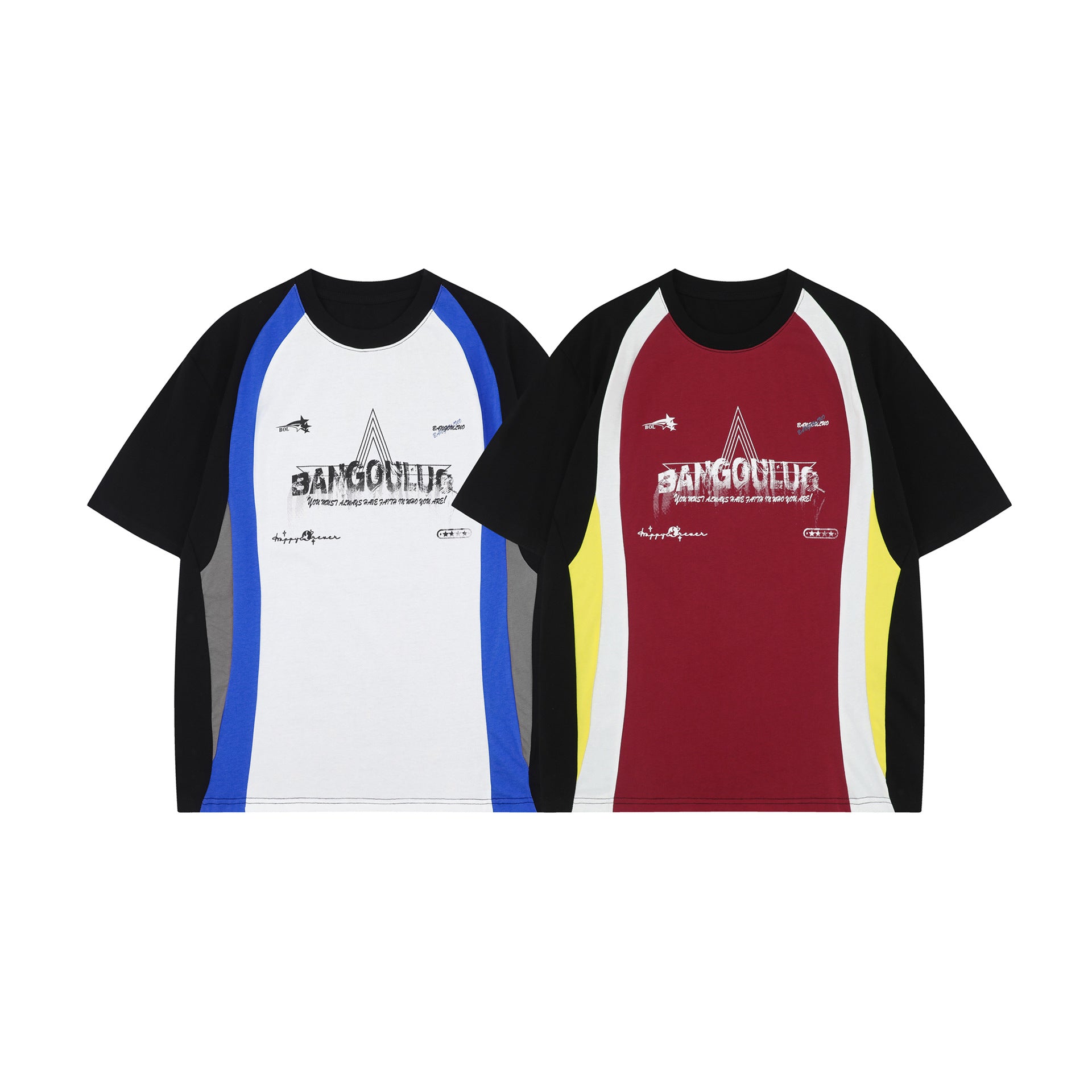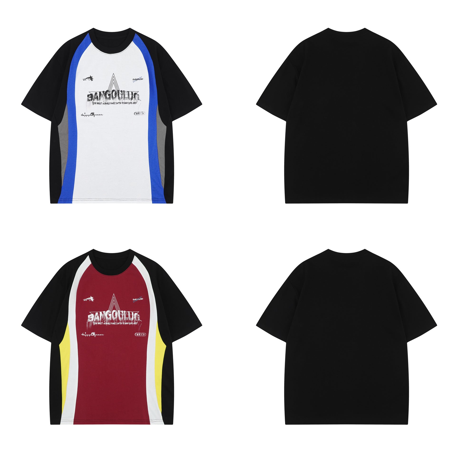 2025 1024 2025n Street Tide 2025 Summer Neutral Premium Sense Splicing Letter Map Design Men's Loose Short Sleeve T-Shirt