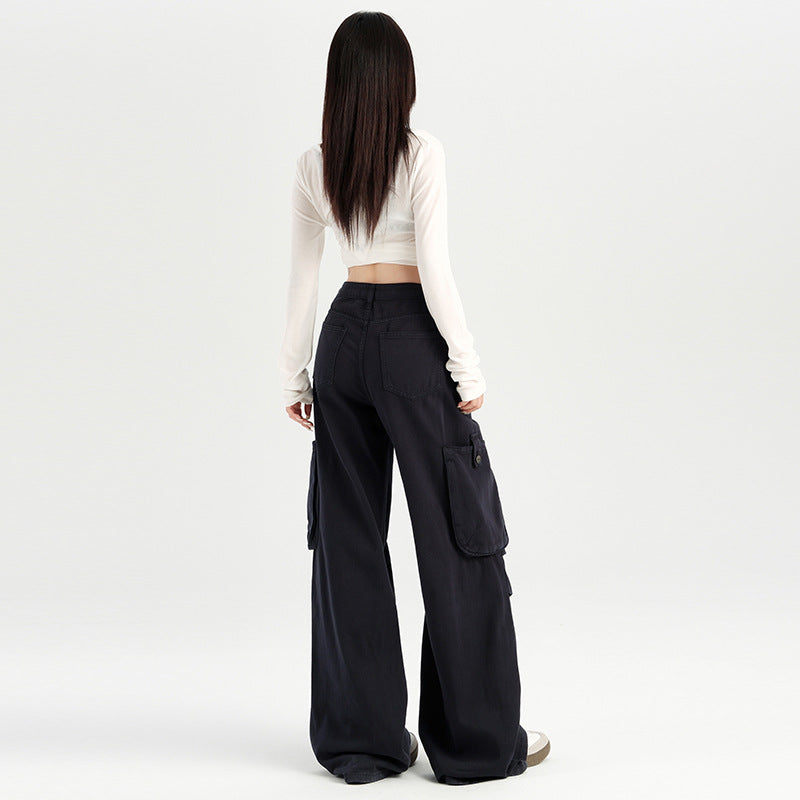 2025 A piece of wholesale hair delivery, n Ankola red dyed overalls, autumn Hong Kong style, high waist, multiple pockets, loose wide legs.
