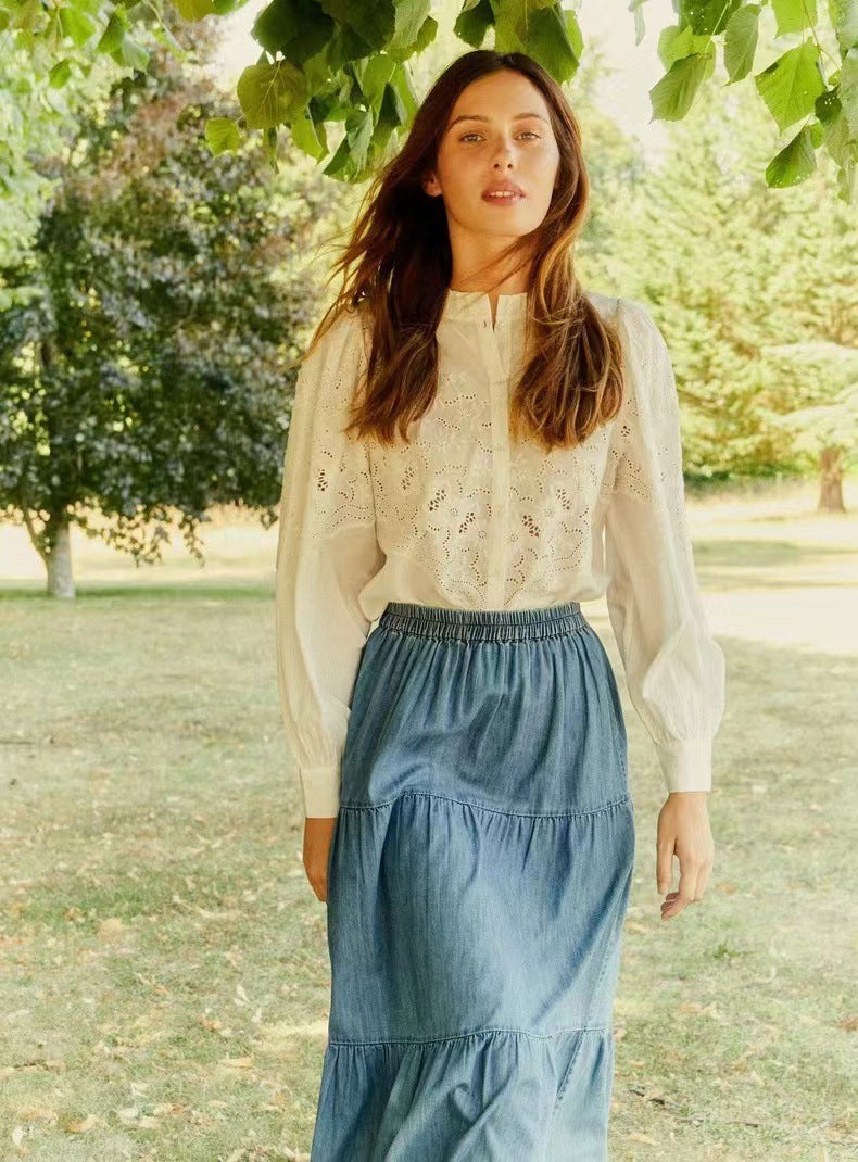 2025 literary shirt popular new hollow daisy embroidered cotton lace collar bubble sleeve shirt women 31514