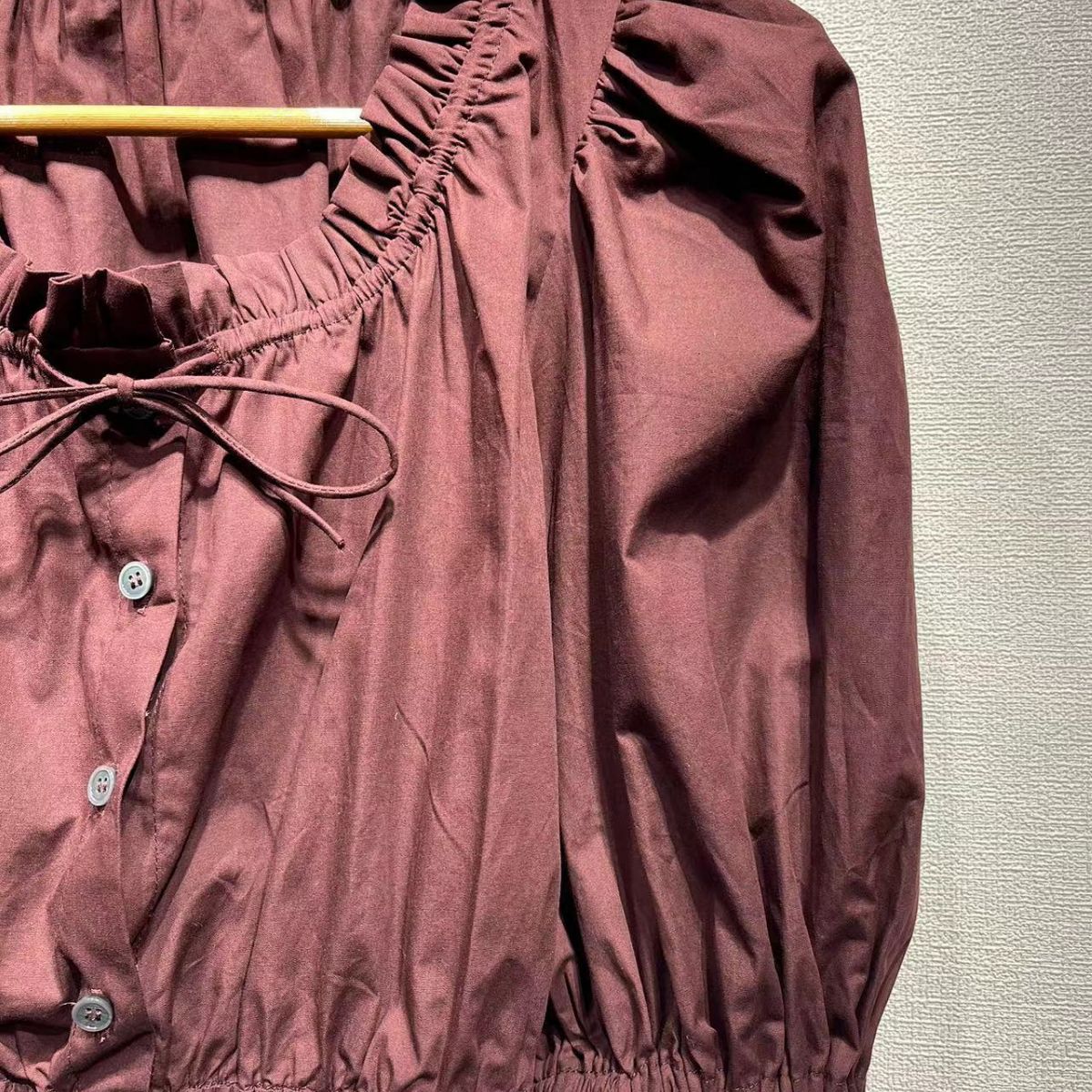 2025 n women's clothing SE fuchsia bubble sleeves poplin pure cotton short-sleeved lace-up top ultra-short waist shirt summer