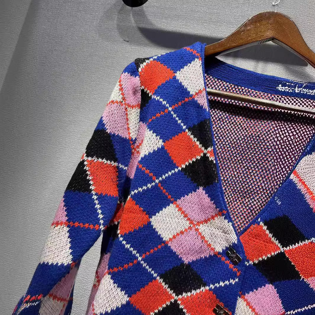 2025 Sapphire blue long-sleeved knitted jacket sweater loose and thin V-neck butterfly button long-sleeved knitted cardigan jacket women