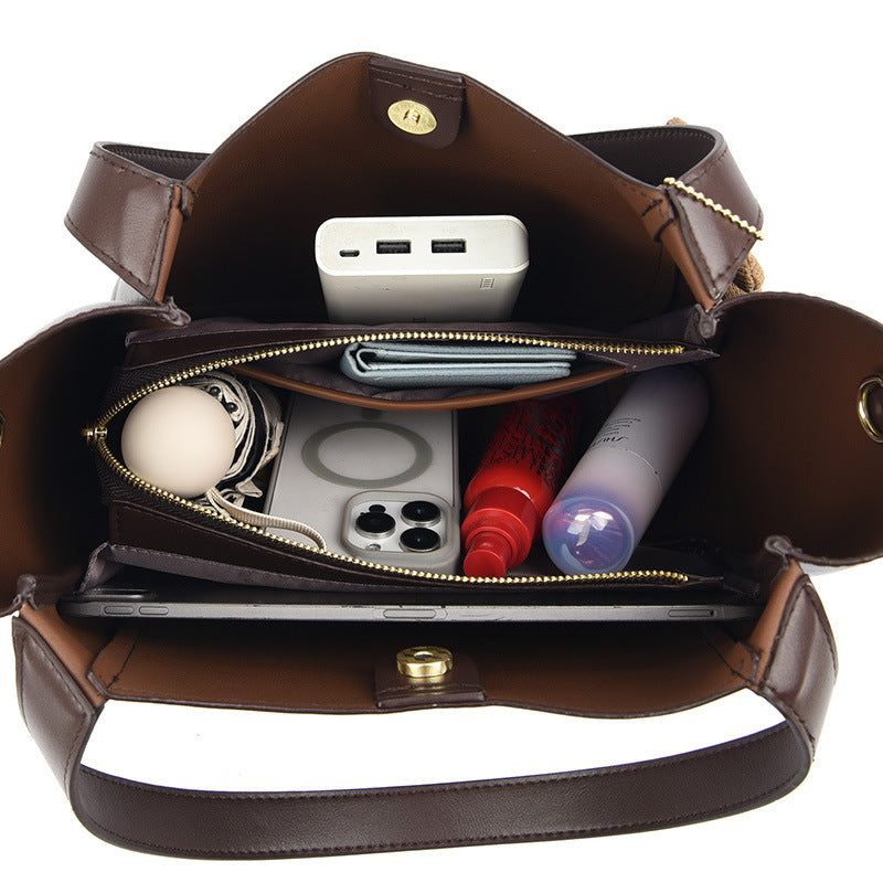 2025 Shoulder bag women's new high-end soft leather bag simple retro women's messenger bag large-capacity commuter tote bag