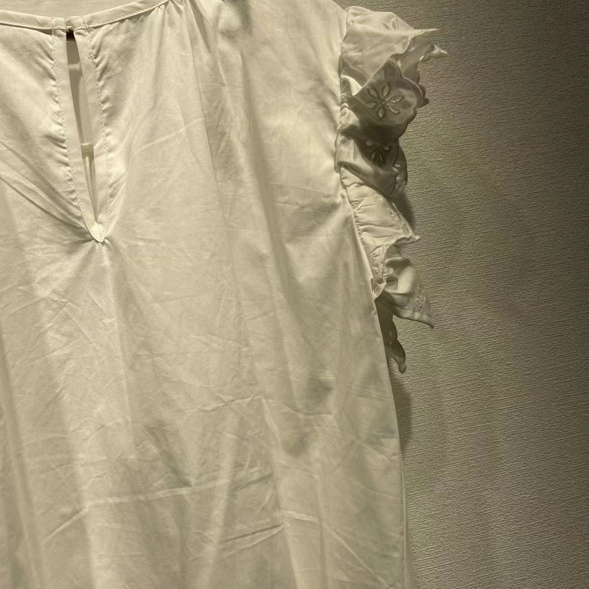 2025 Small women's clothing popular new sweet hollow embroidery age-reducing lace small flying sleeve shirt women's summer 31425