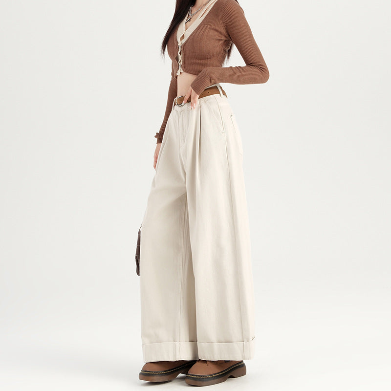 2025 straight dyeing popular autumn new angora red curled jeans women's high waist and thin wide-leg denim
