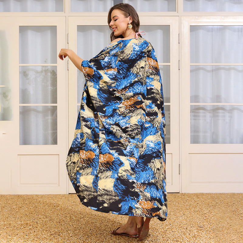 2025 summer new beach with leisure vacation printed beach bikini swimsuit blouse sunscreen cardigan