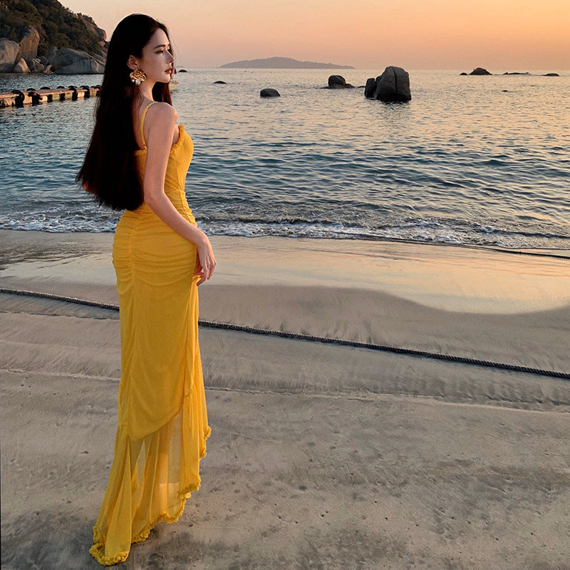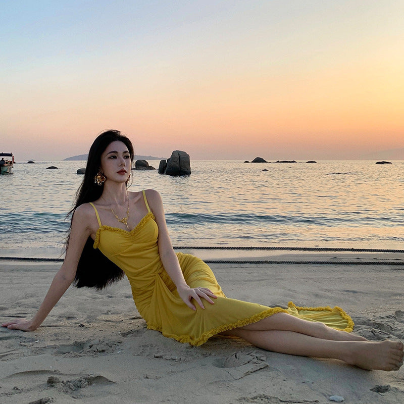 2025 Temperament Slim Sexy Spice Girl Suspender Dress Female Design Sense Niche Lace Irregular Dress Vacation Beach Dress