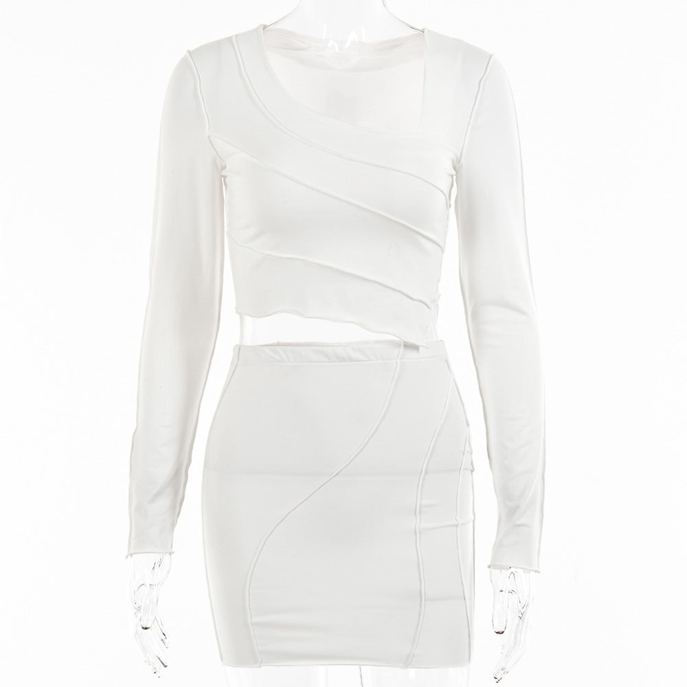 2025 women's clothing summer new suit sexy tight fashion high waist skirt long sleeve T-shirt striped skirt