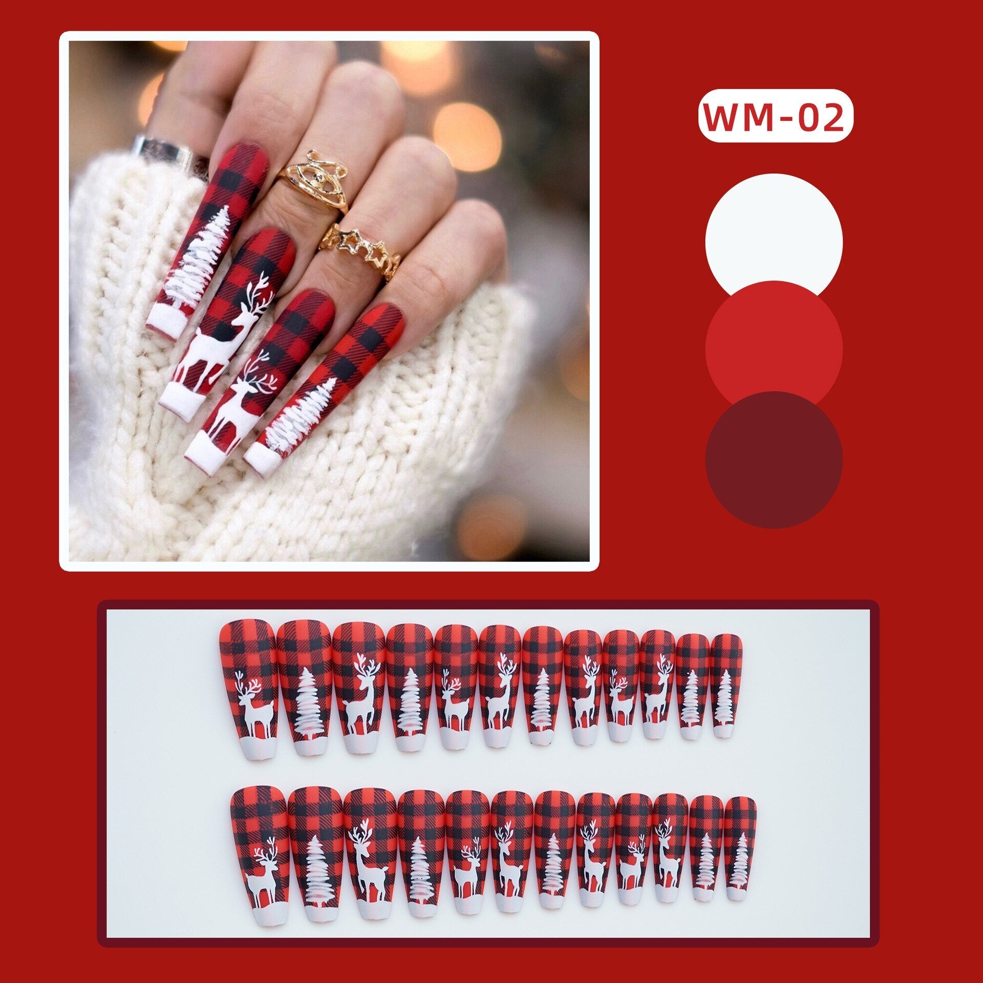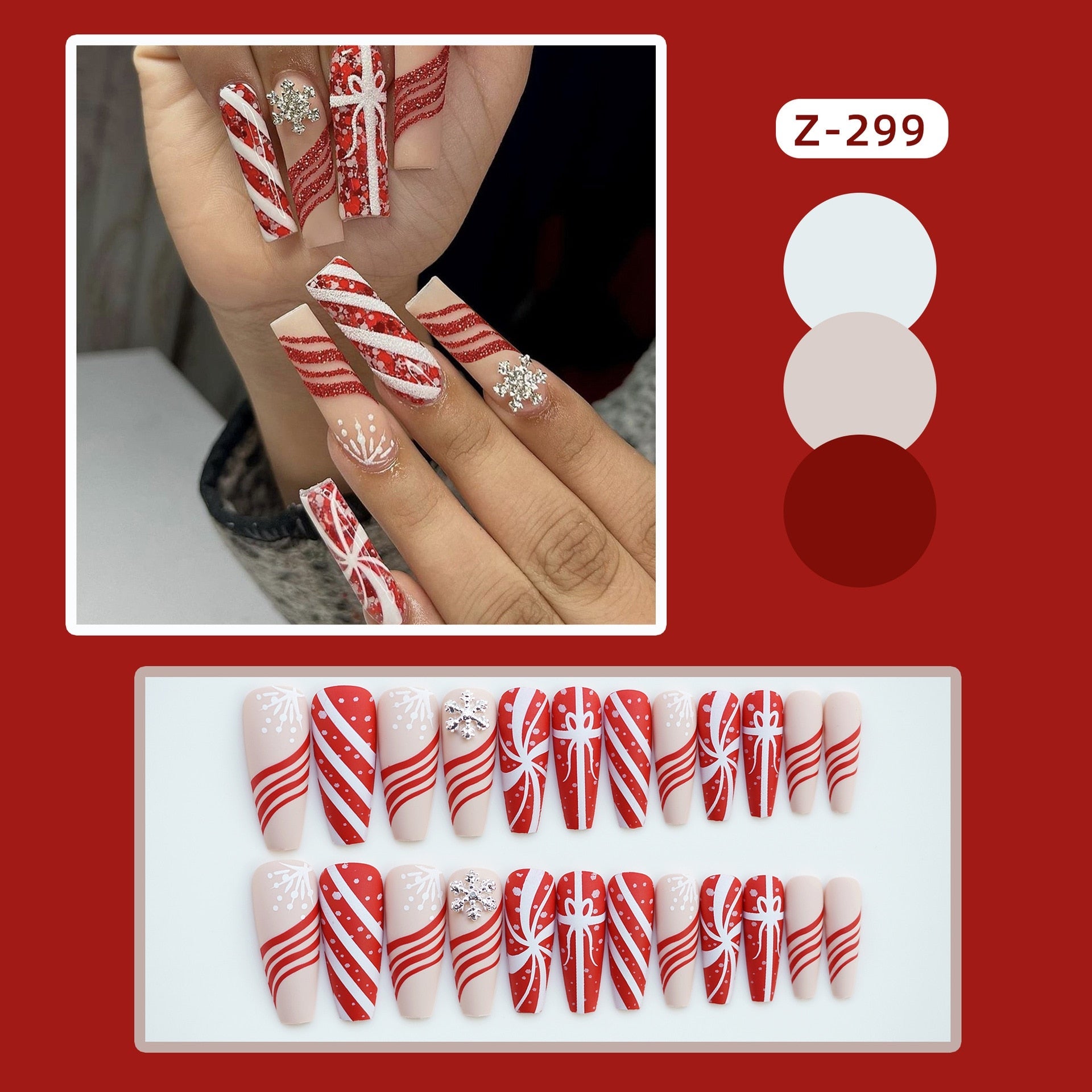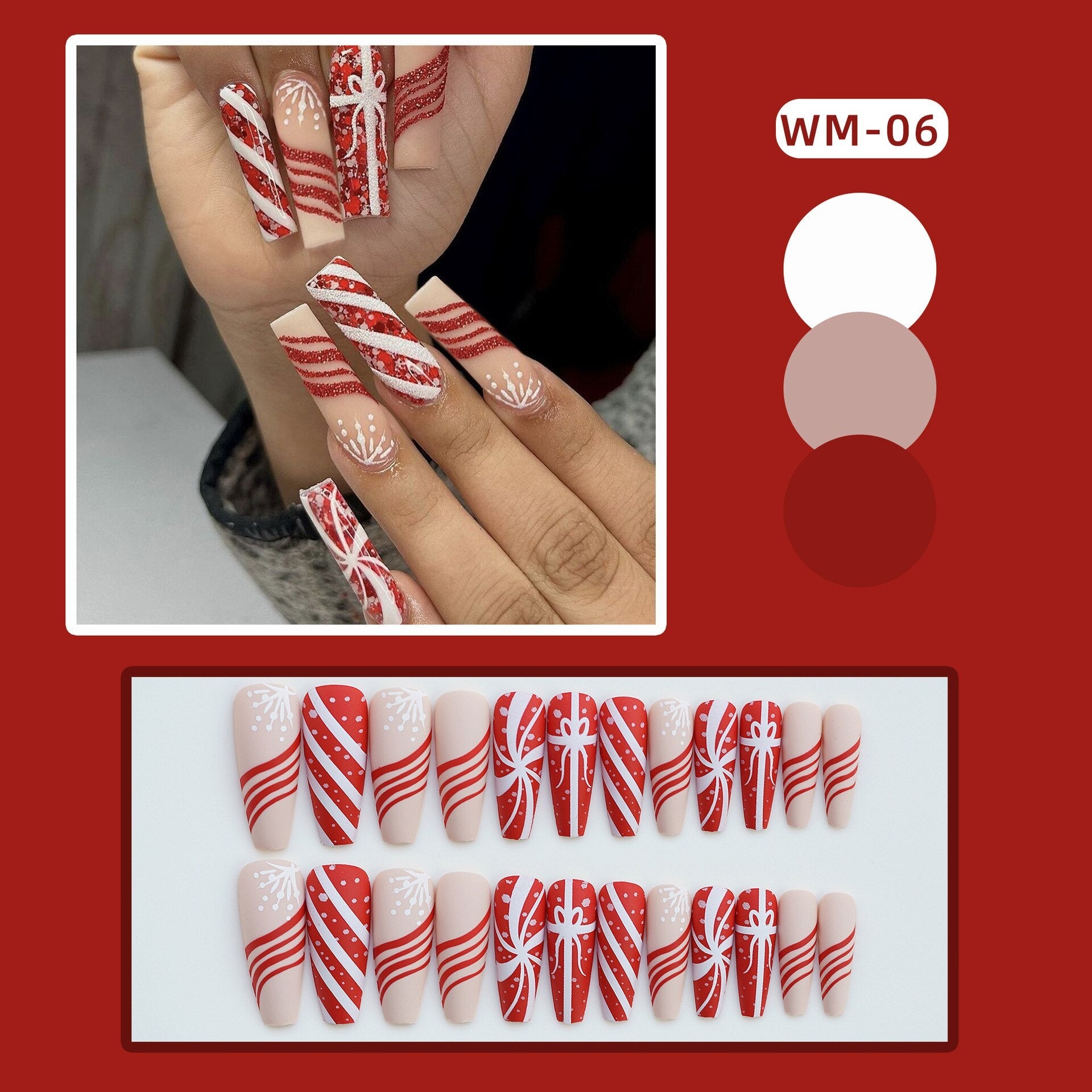 24Pcs Long Coffin False Nails Christmas Gift Designs Wearable French Ballerina Fake Nails Press On Full Cover Manicure Nail Tips