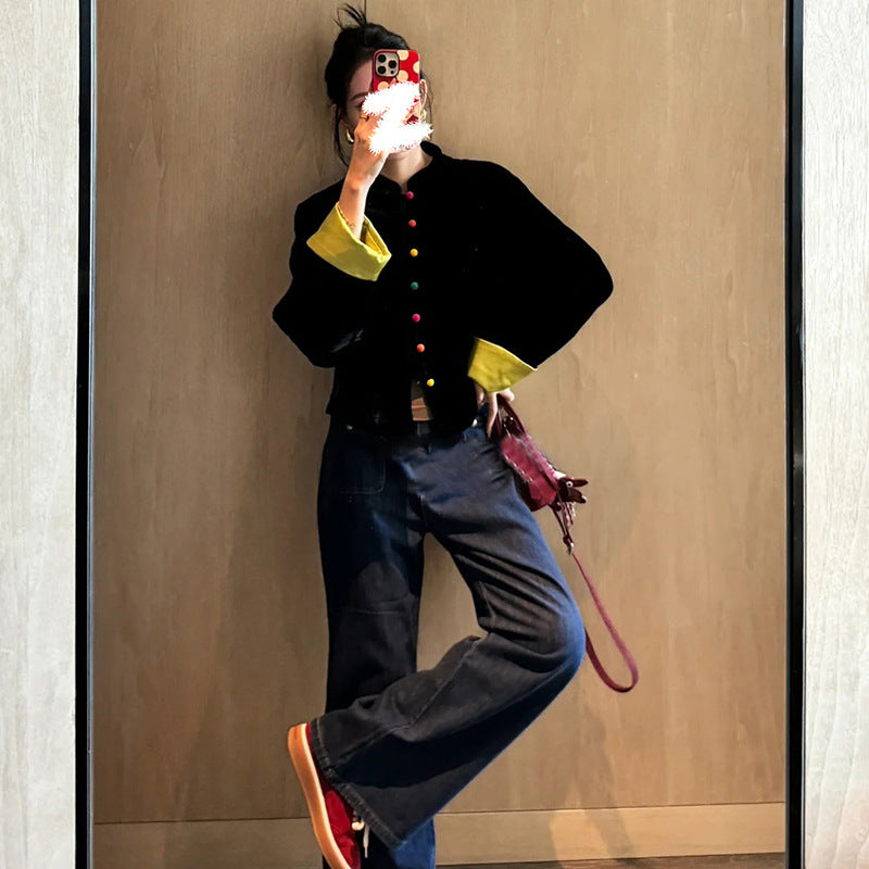 autumn new national style new Chinese unique jelly bean buckle design velvet mulberry silk jacket women M9132