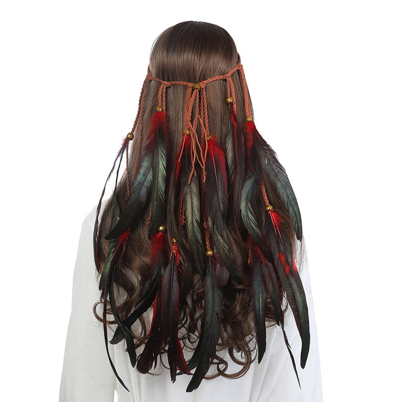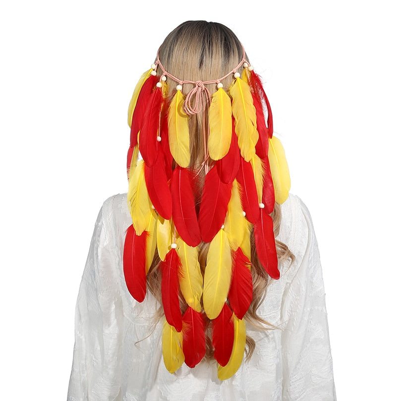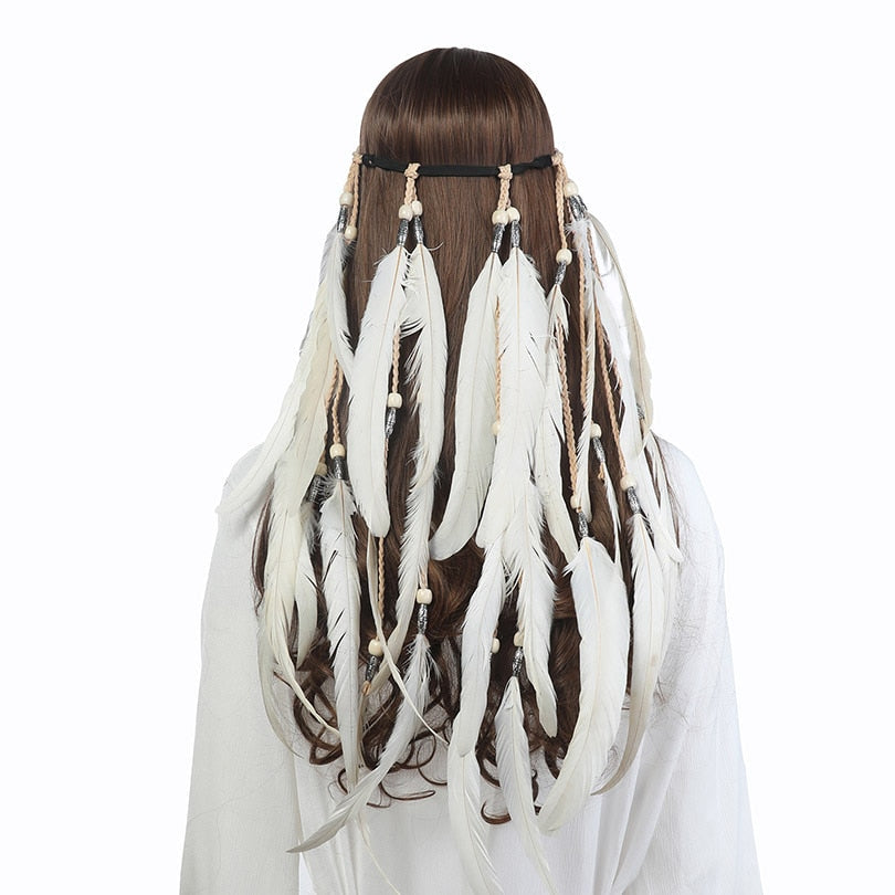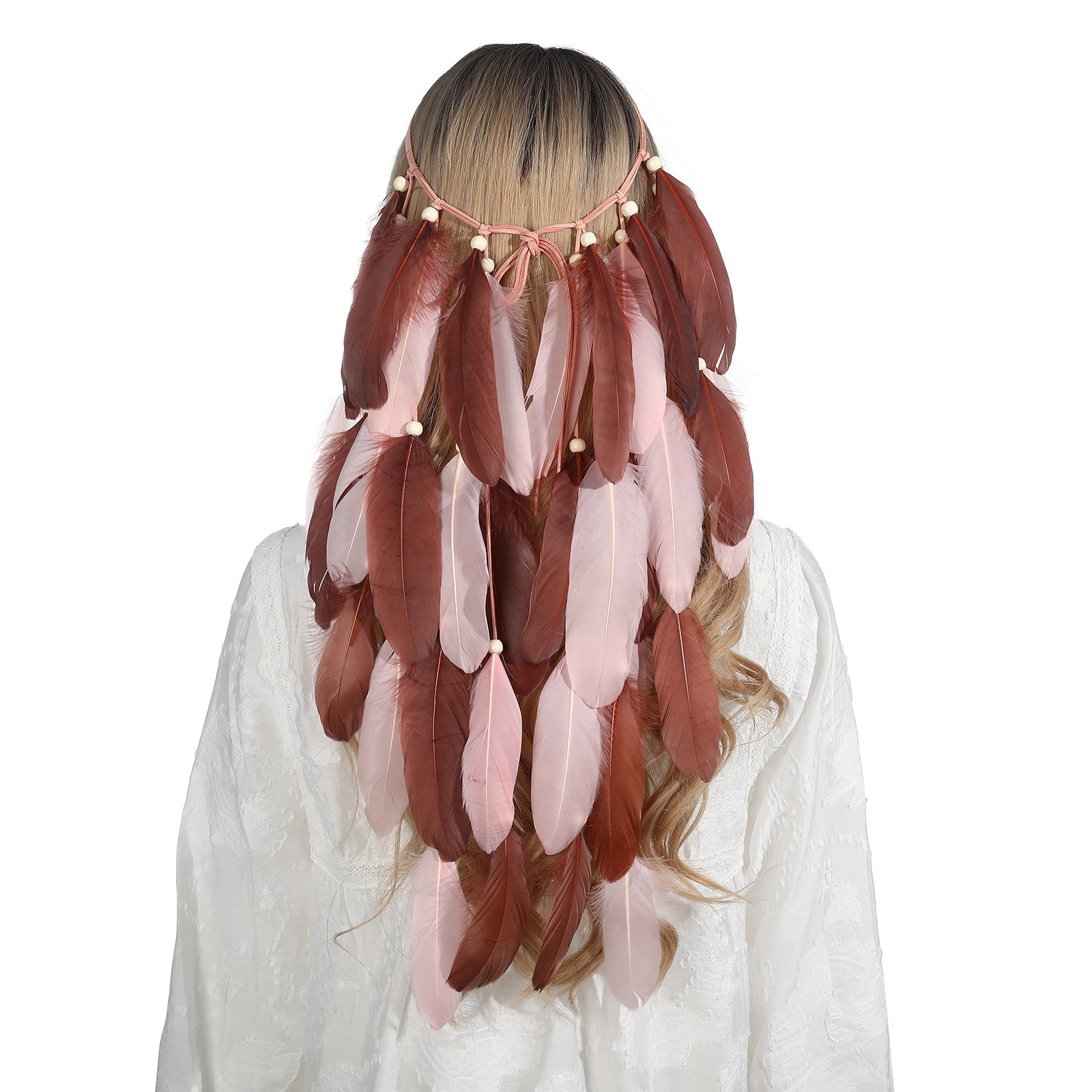 Fashion Boho Style Feather Headband Hairpiece Beads Feather Headdress Handmade Girls Hair Accessories High Quality