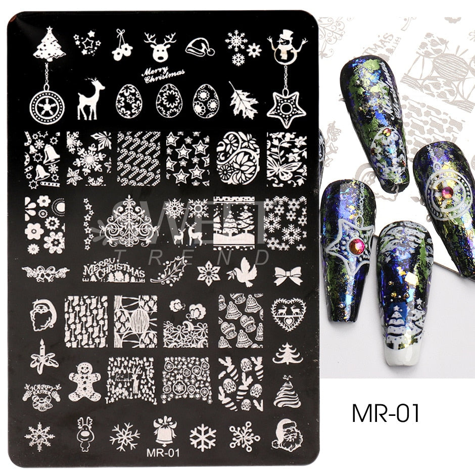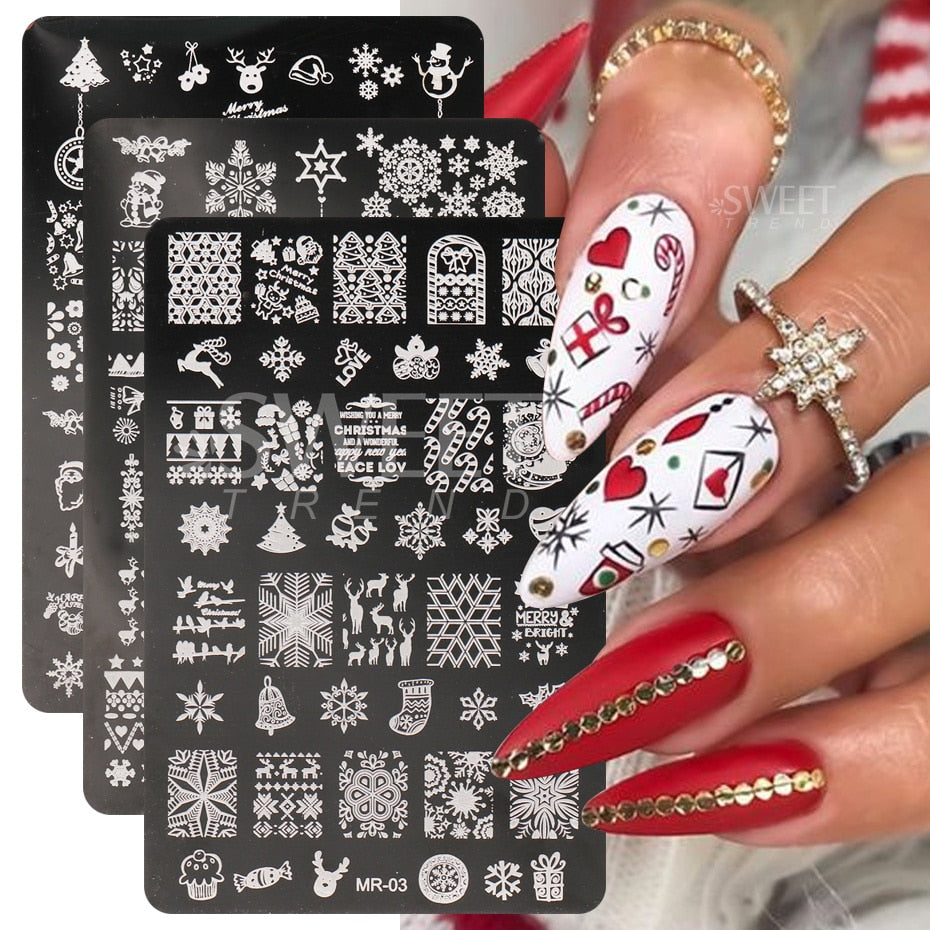 Christmas Nail Stamping Plates Snowflakes Snowman Deer New Year Stencils Design Polish Manicure Template Nail Art Tool SAMR01-03