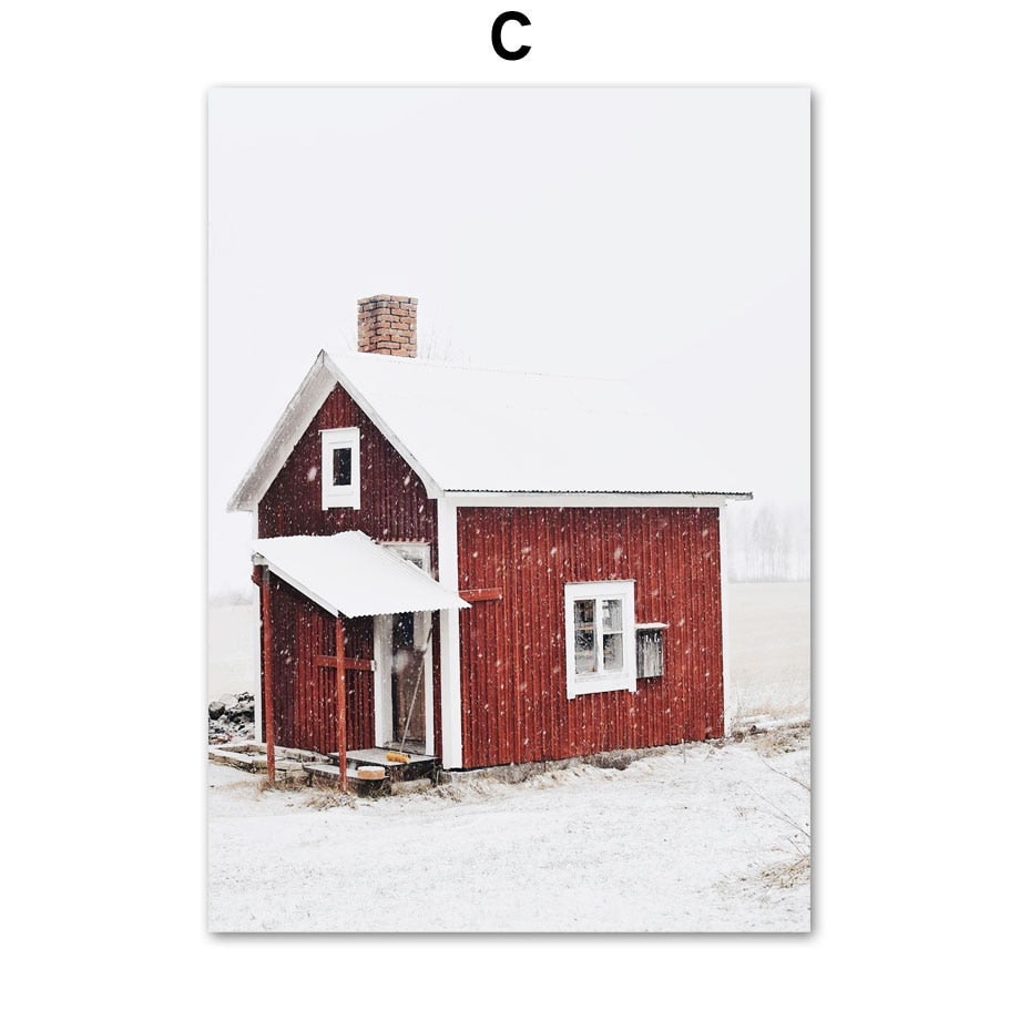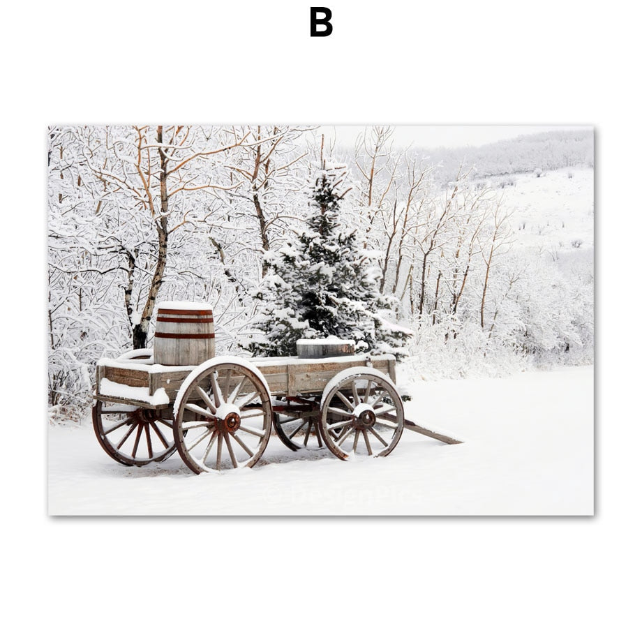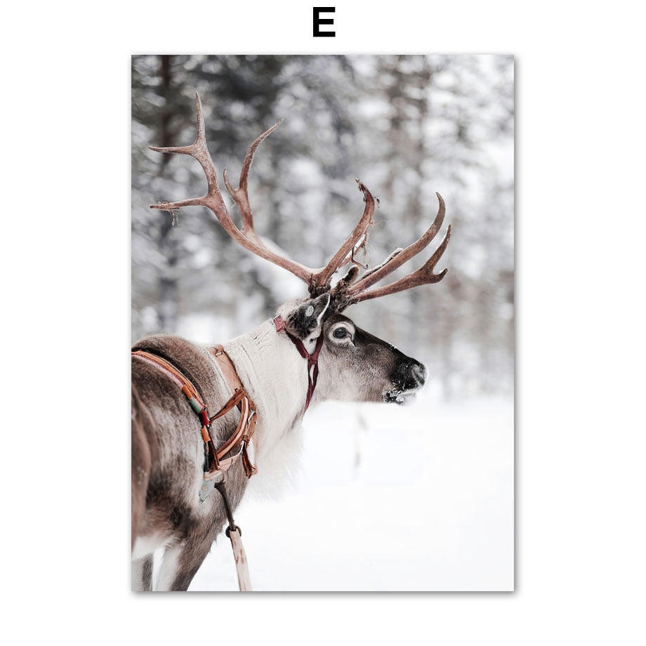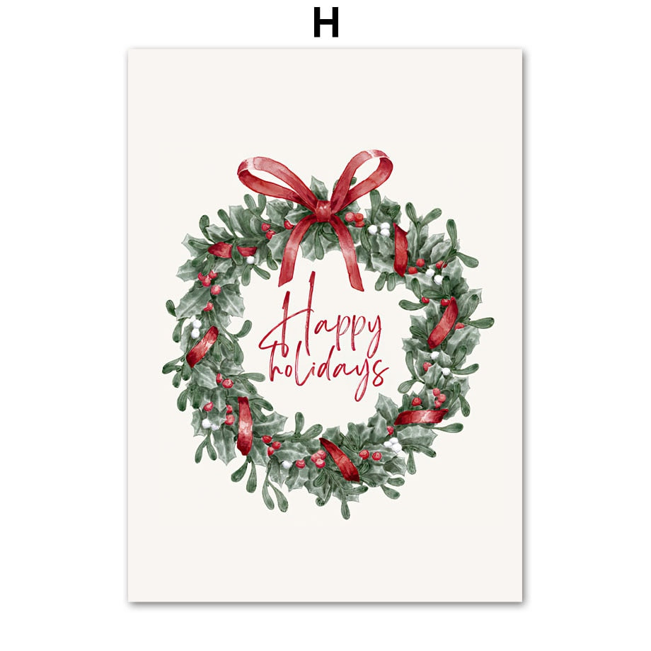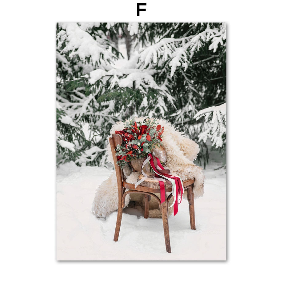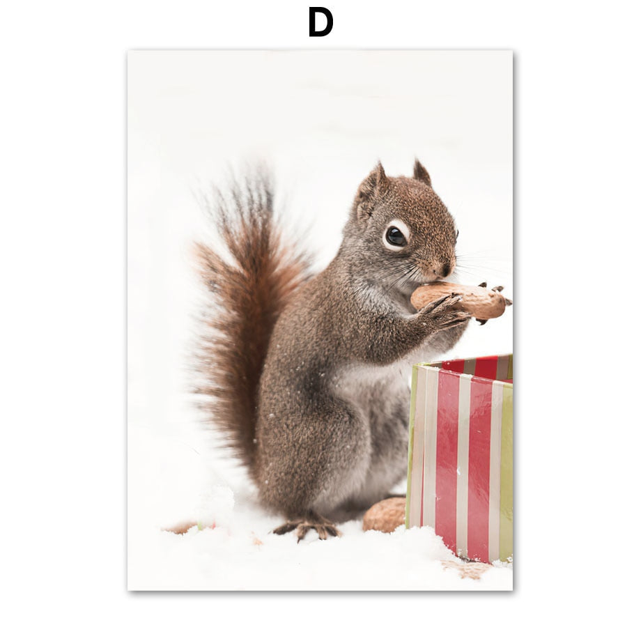 Christmas Red Car Home Elk Squirrel Wall Art Canvas Painting Holiday Living Room Decoration Posters And Prints Wall Pictures