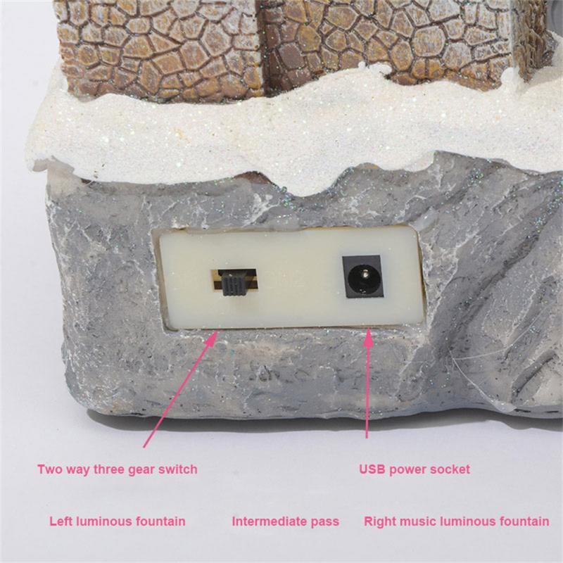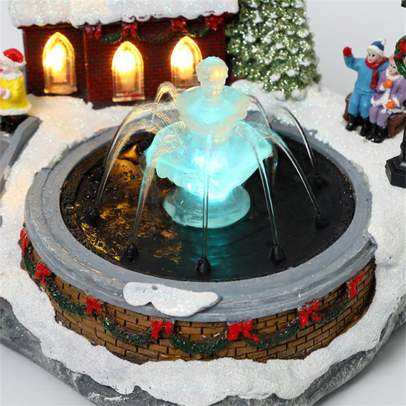 Christmas Village Ornaments Santa Claus Snow House Luminous LED Light Up Music Xmas Tree Water Fountain Xmas New Year Home Decor