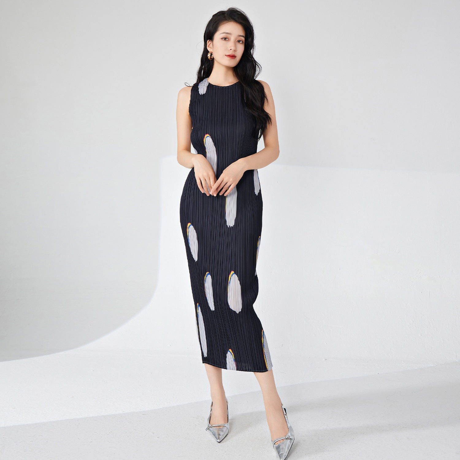 counter dress women's summer high-quality temperament printed sleeveless long elegant one-step hip-wrap skirt