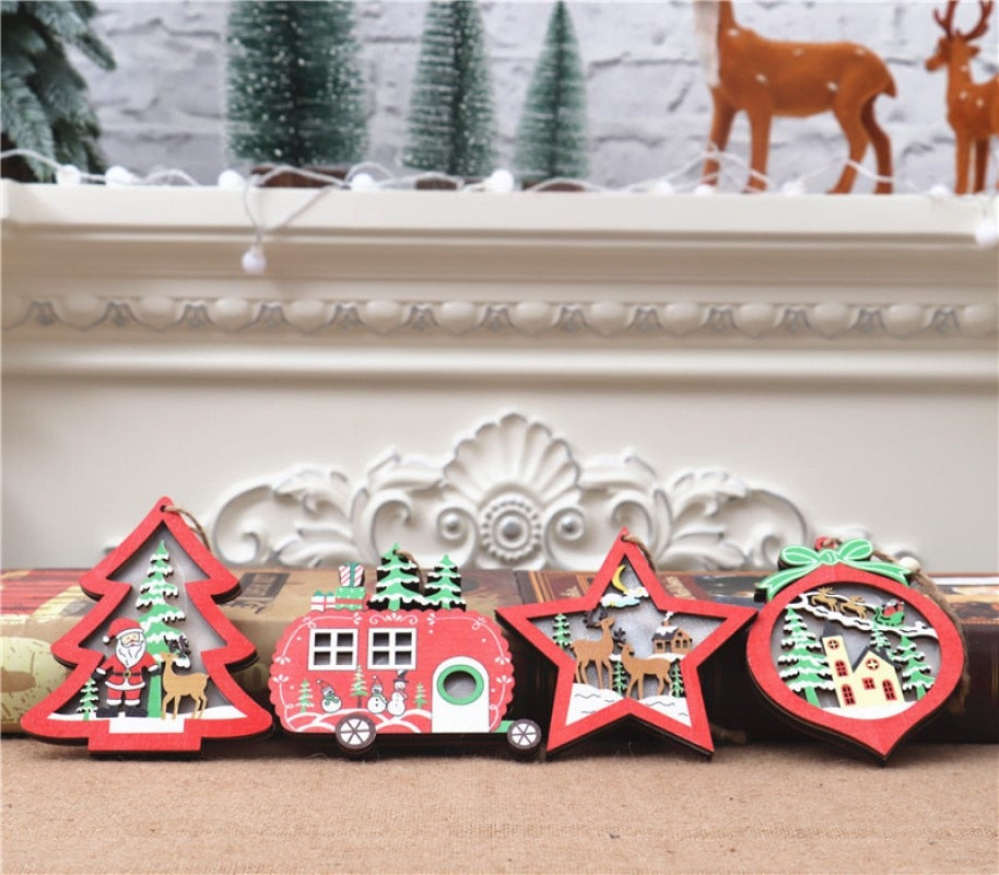 Creative Led Light Christmas Tree Hanging Pendant Star Car Heart Wooden Ornament Home Xmas Decoration New Year Navidad Kids Gift