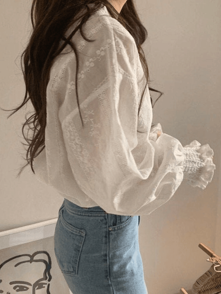 Description: Embrace the charm of summer with this adorable crochet lace blouse. Designed to flatter your figure, this top features intricate embroidered details and elasticated shirred cuffs. Whether you're heading to a picnic or strolling through the streets, this cute blouse will keep you stylish and comfortable. Pair it with your favorite jeans or skirts for a trendy and feminine look.