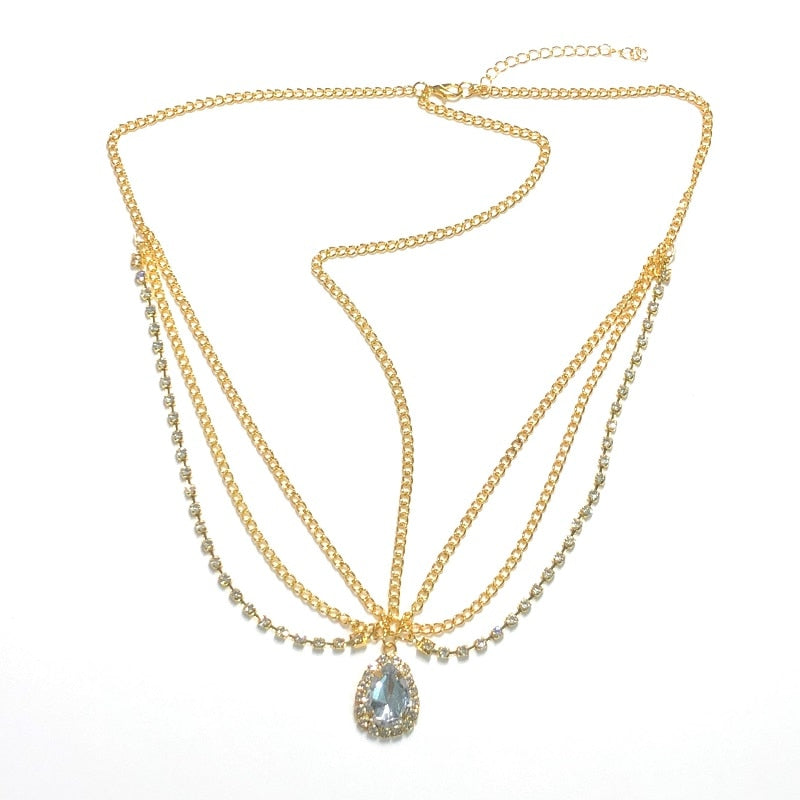 Crystal forehead dance eyebrow pendant headdress crystal forehead chain water drop hair ornament head chain Bohemian headdress