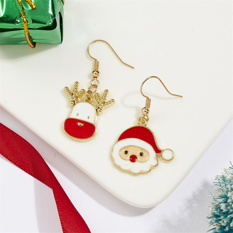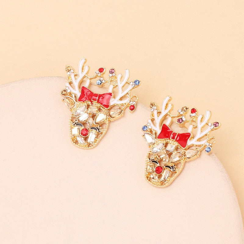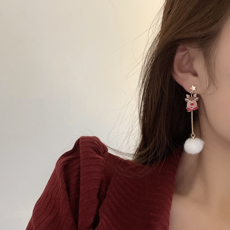 Cute Christmas Elk Dangle Earrings For Women Charm Xmas Deer Star Bowknot Round Ball Drop Earring Girls New Year Party Jewelry