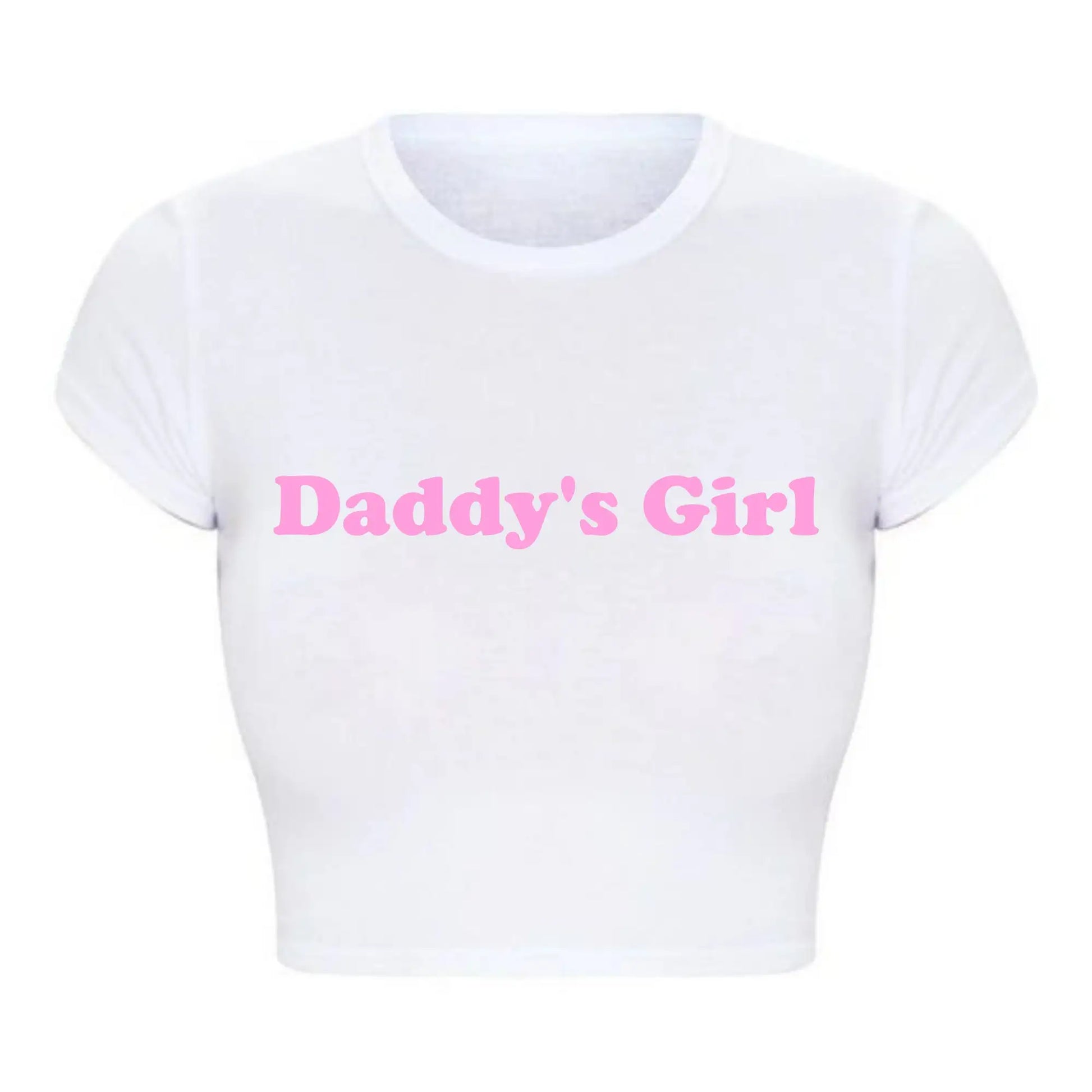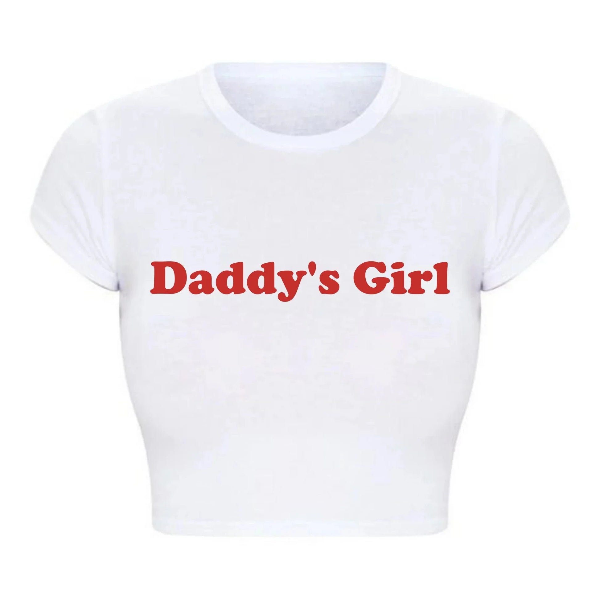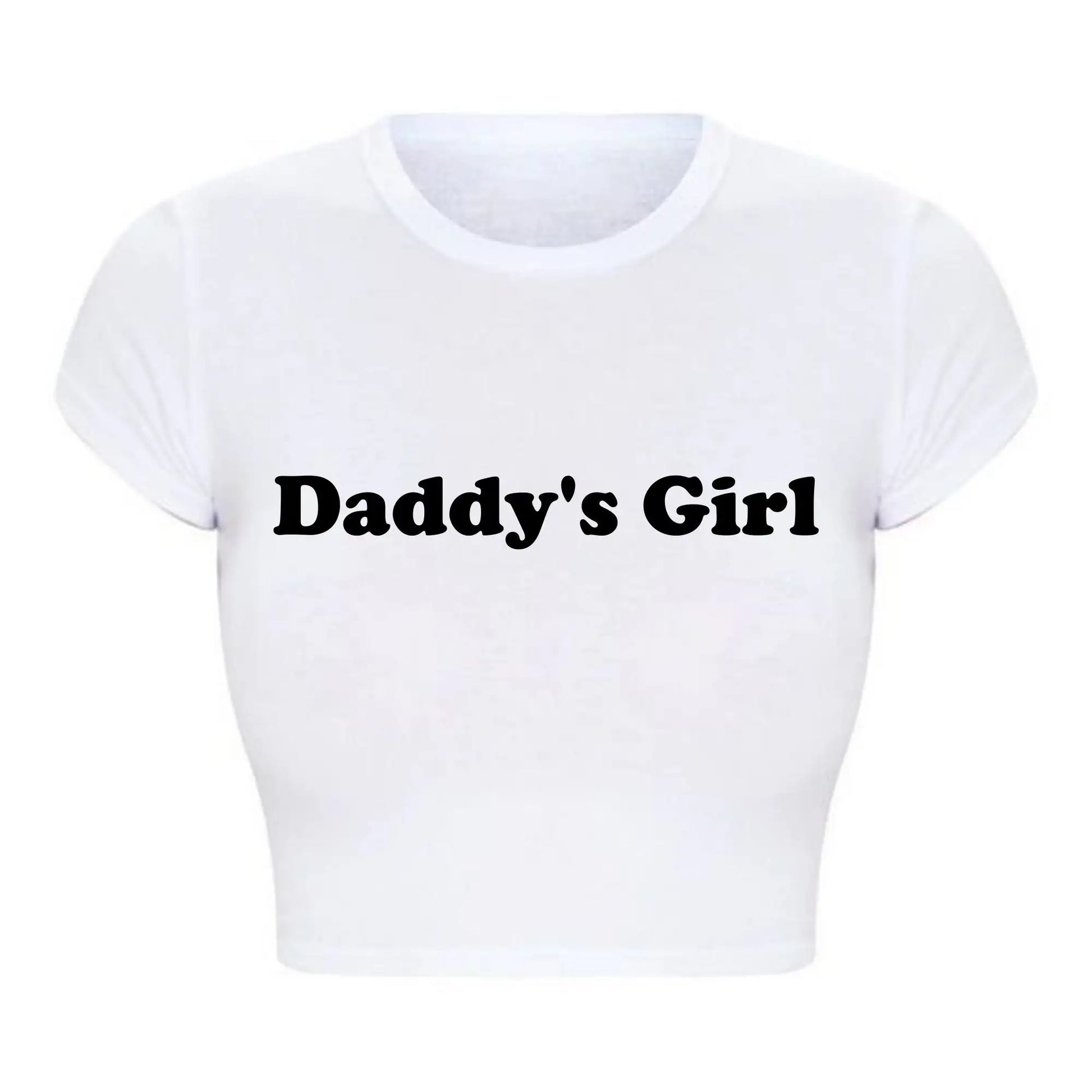 Daddy's Girl Funny Letters Print Women Cropped Top Harajuku Kawaii Clothes 2000s Grunge T Shirt Baby Tee Tshirt Dropshipping