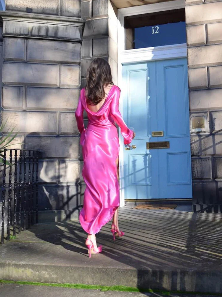 Elegant Christmas Evening Dress Women Long Sleeve Dress Bodycon Max Female Vestidos High Grade Satin Party Club Clothing
