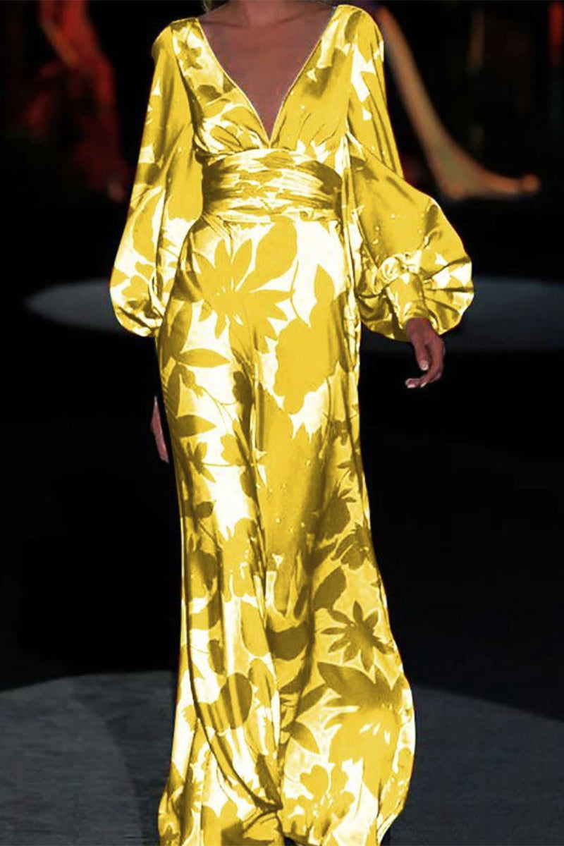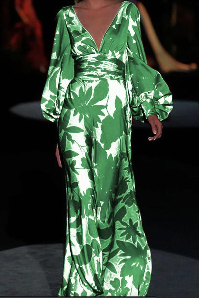 Elegant Print Printing V Neck Cake Skirt Dresses(3 Colors)
