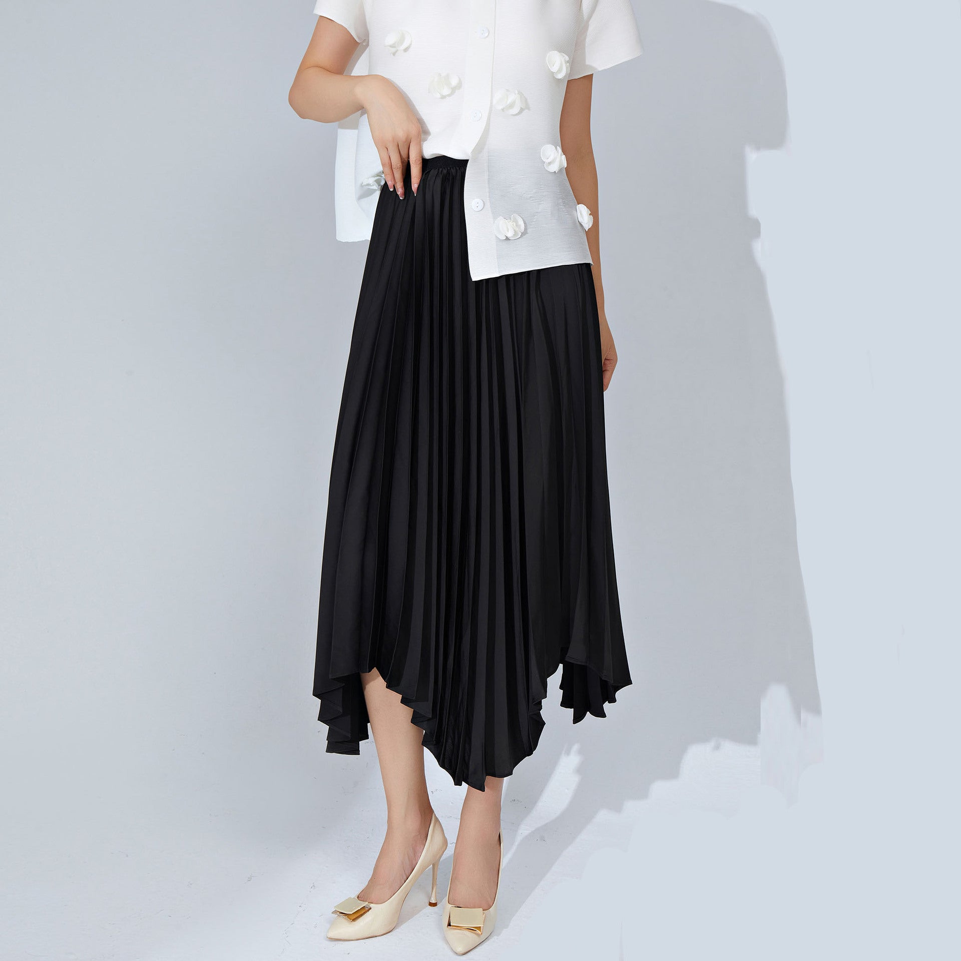 fashion pleated skirt women's high sense solid color loose pendulum irregular versatile skirt a word women's drape