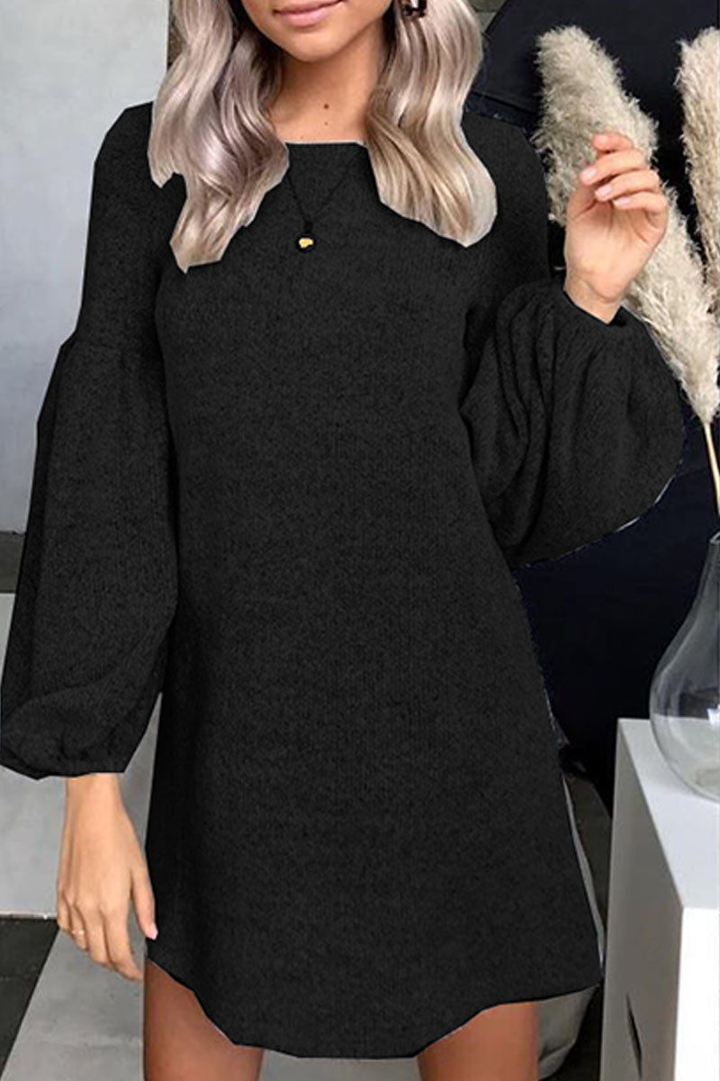 Fashion Street Solid O Neck A Line Dresses(4 colors)
