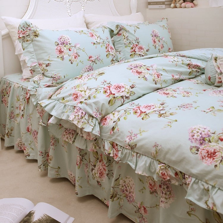 flower print bedding set European and American Pastoral Style New Flower Cotton Ruffle Craft Bedding Four-Piece Set