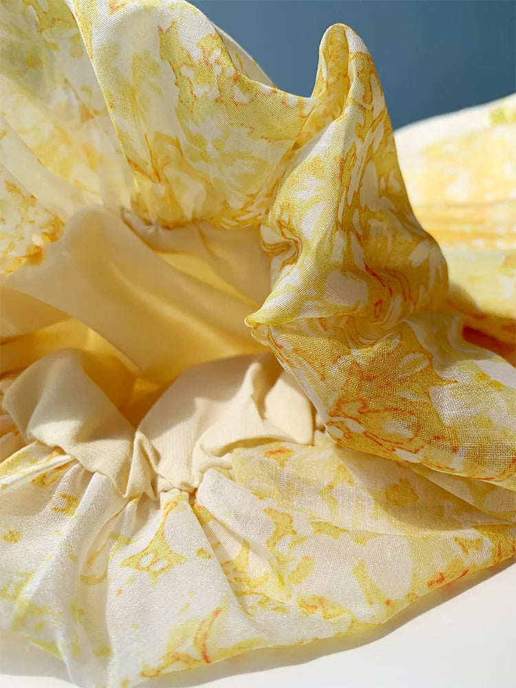 French Floral Printed Puff Sleeve Beading Midi Dress Women V Neck Elegant Slim Waist Party Dresses Fashion Summer