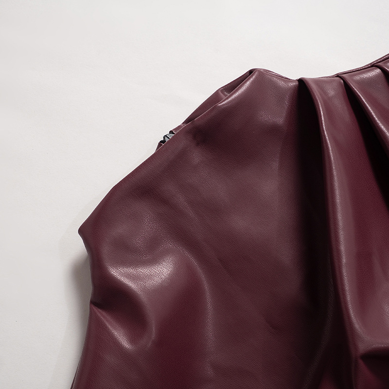 Gtpdpllt PU Leather Tank Top High Fashion Asymmetrical Ruched Sleeveless Blouse Winter Sexy T Shirt For Women Y2K Clothes