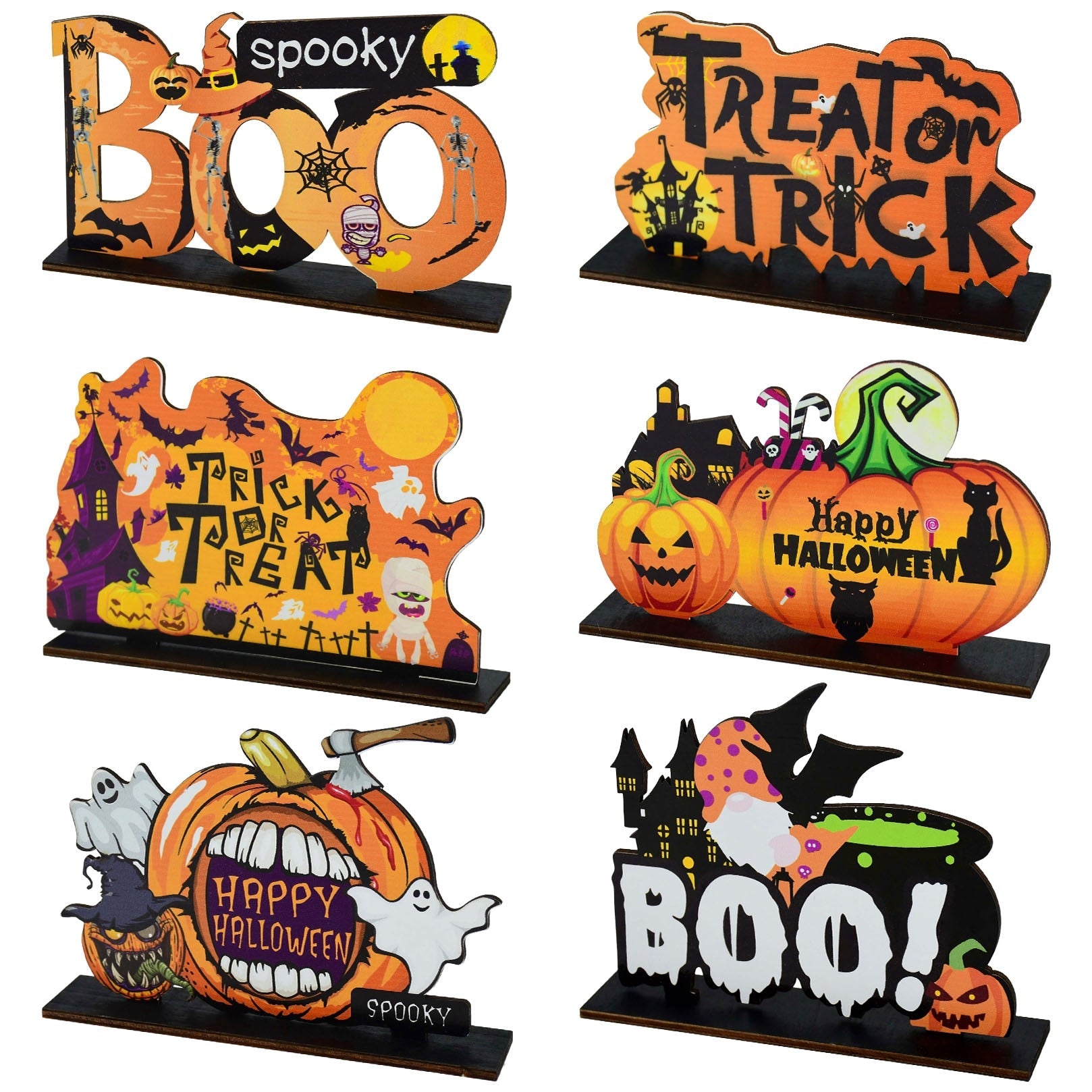 Halloween Wooden Ornaments Pumpkin Ghost Trick or Treat Pendants Halloween Party Decoration for Home Door Hanging Signs Kids Toy