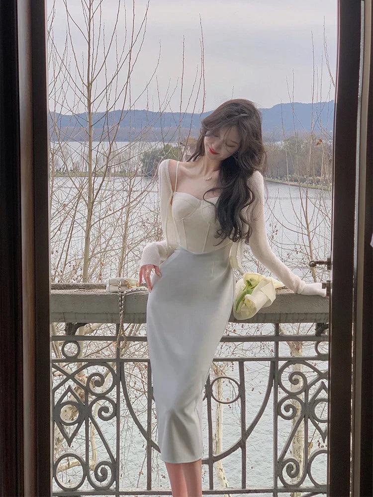 qgtao-Luxury Corset Ruched Midi Dress for Women Spaghetti Strap Sexy Bodycon Elegant Slim Party Evening Dress Vestidos Summer 2023