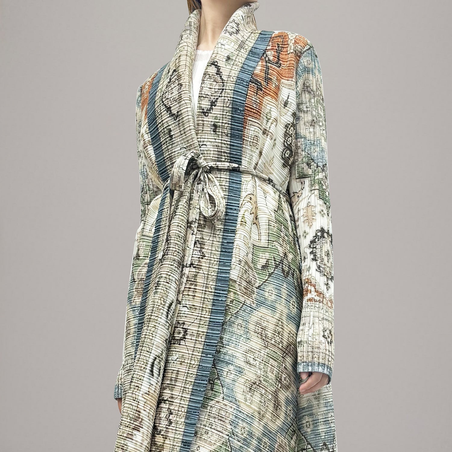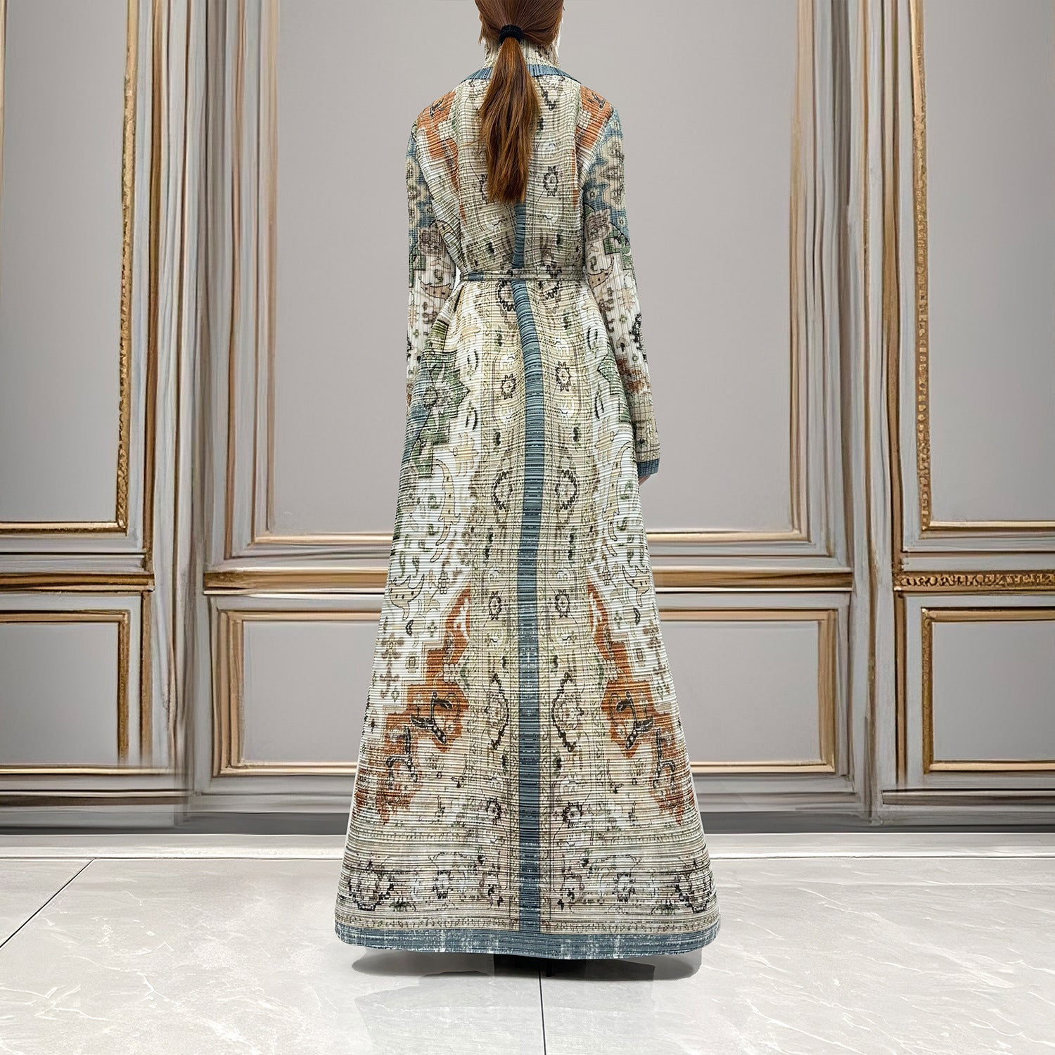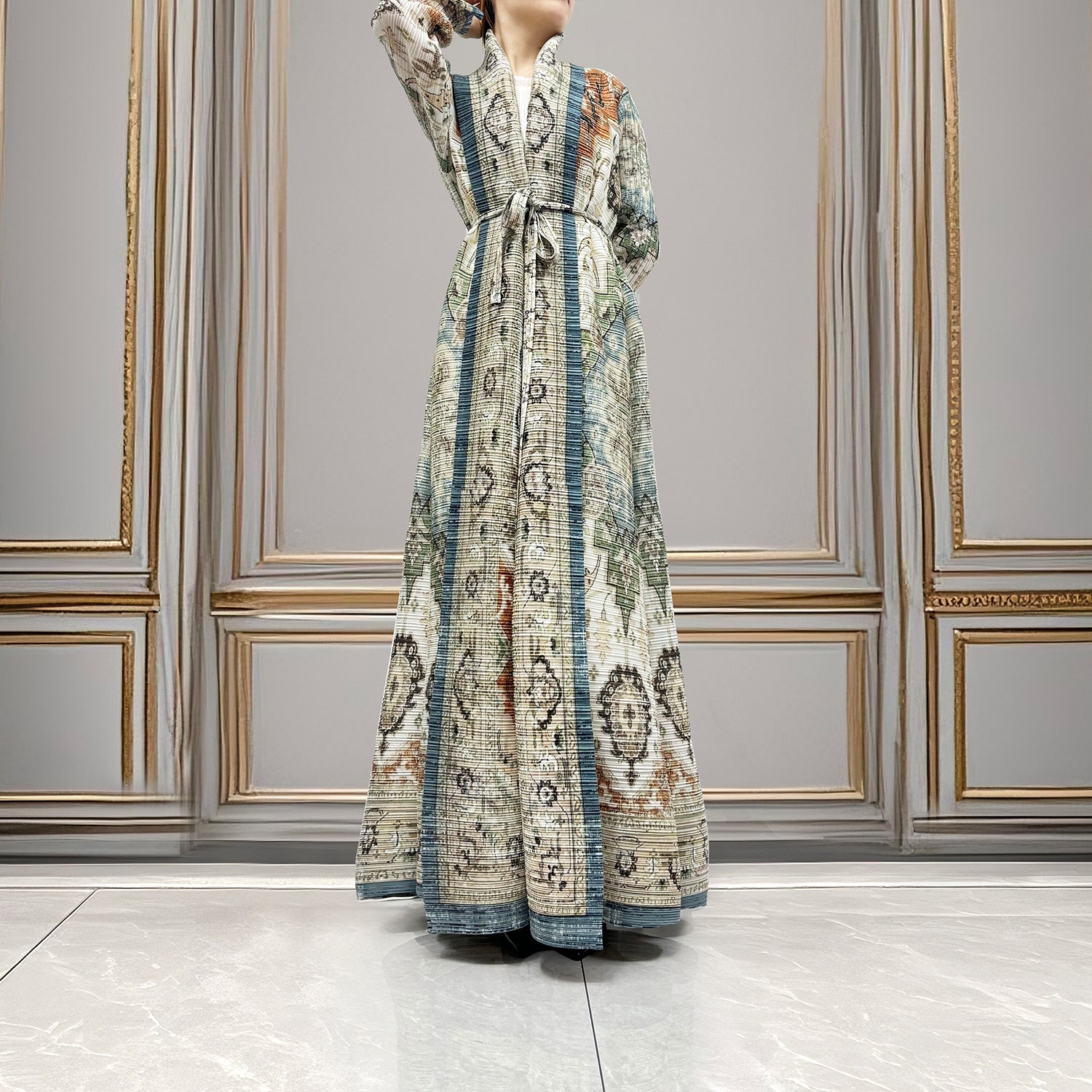 Muslim robe Middle Eastern robe women's cardigan abaya printed lace-up long-sleeved design temperament jacket