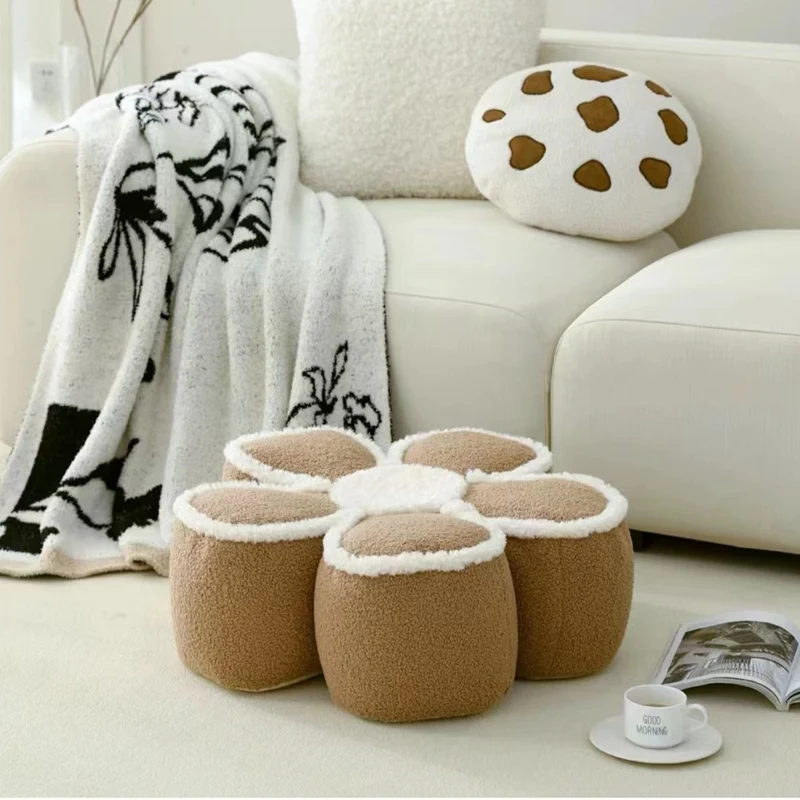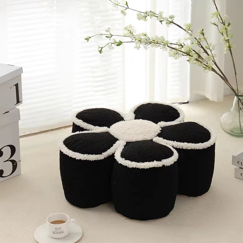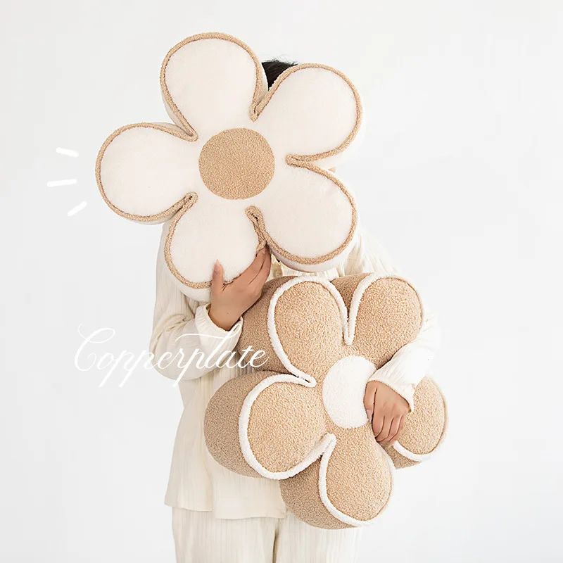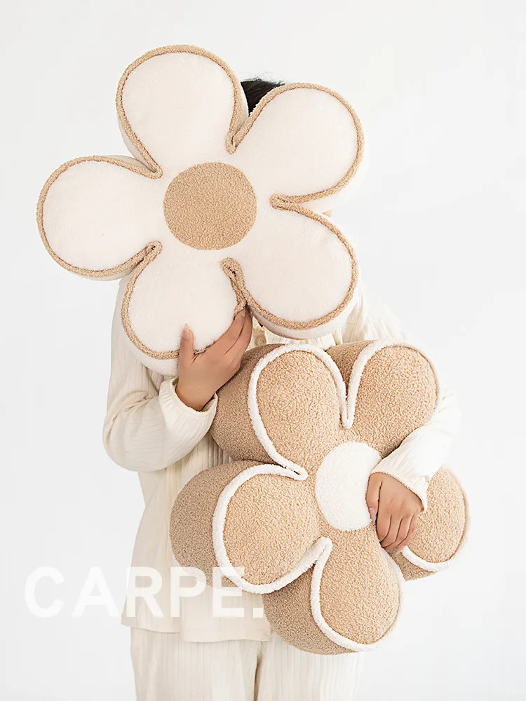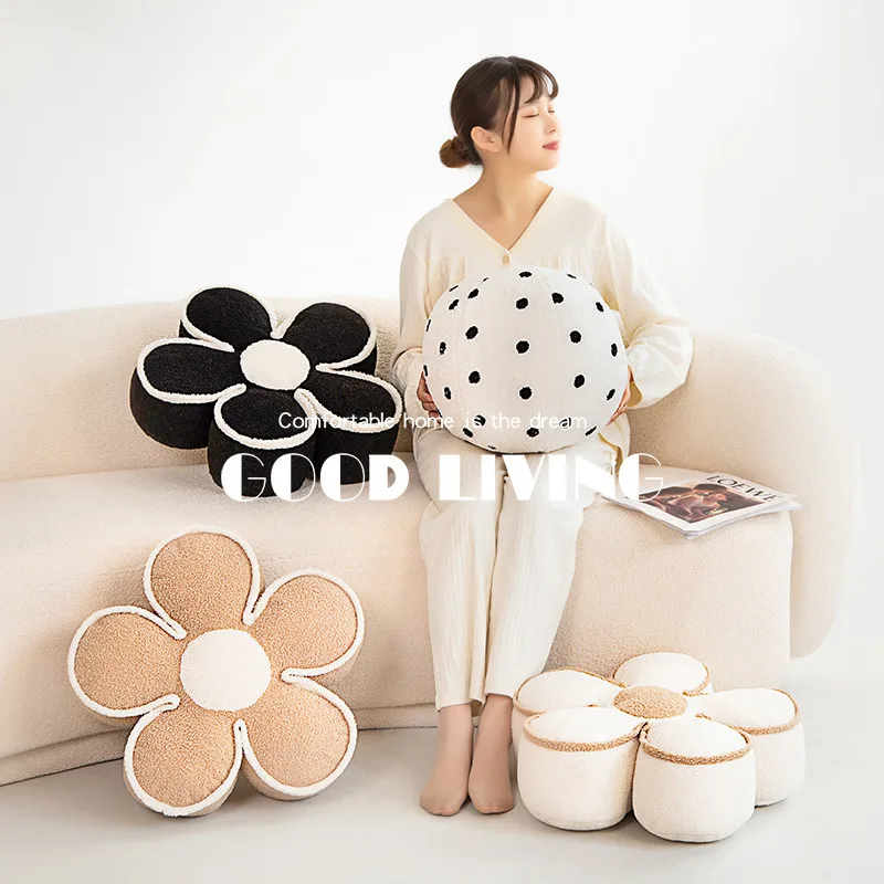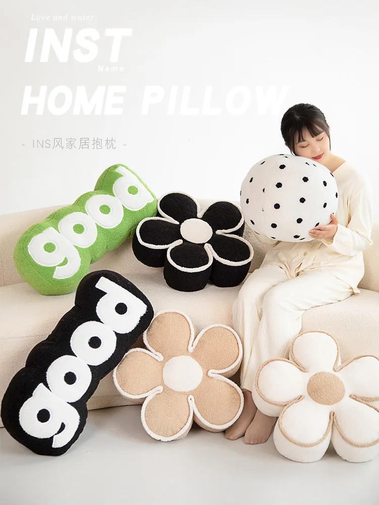 Nordic Elegant Black& WhiteCamellia Flower Cushion Good Words Pillow Stuffed Classic Dot Ball Blossom Chair Sofa Seat Home Decor