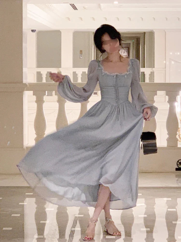 qgtao 2024 Summer Elegant Fairy Midi Dress Women Causal Long Sleeve Vintage Party Dress Female Ruffles One Piece Dress Korean Chic Y2k