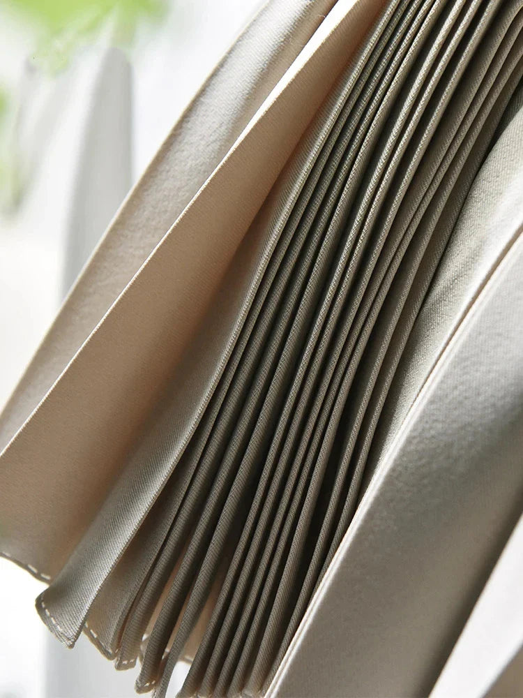 qgtao Elegant Long Pleated Skirt Women Spring Autumn Solid Elastic Waist A-line Slim Luxury Midi Skirt Vintage Female