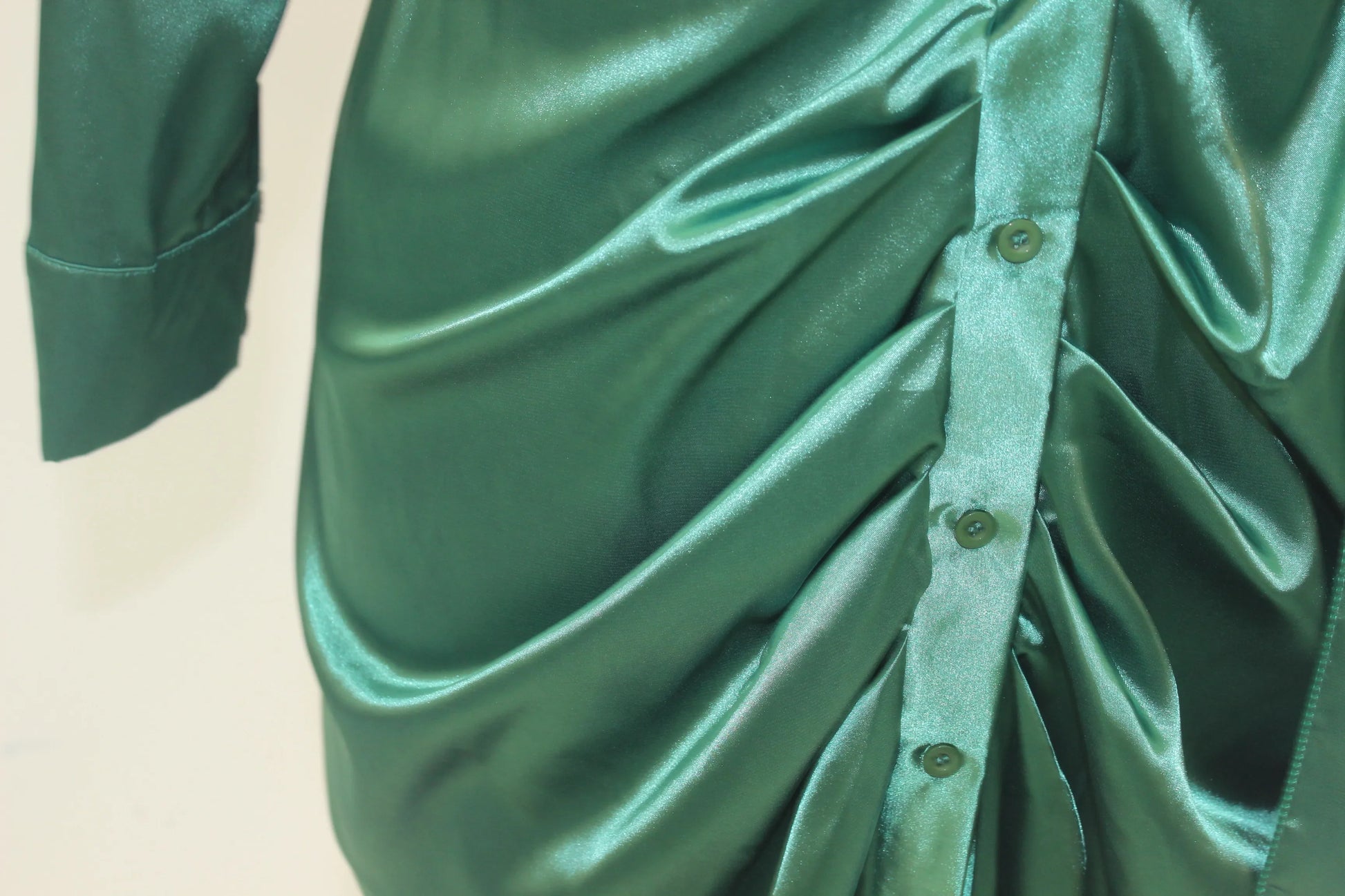 qgtao Elegant Satin Plus Size Women Shirt Dress Sexy Ruched Long Sleeve Lace Up Evening Party Midi Drerss Vestido Africano Feminino