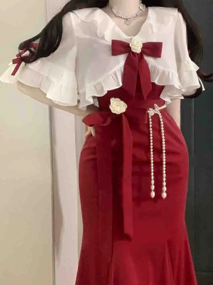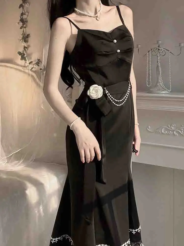 qgtao French Vintage Fairy Mermaid Dress Women Lace Korean Party Princess Strap Dress Female 2024 Spring Court Sweet Lolita Midi Dress