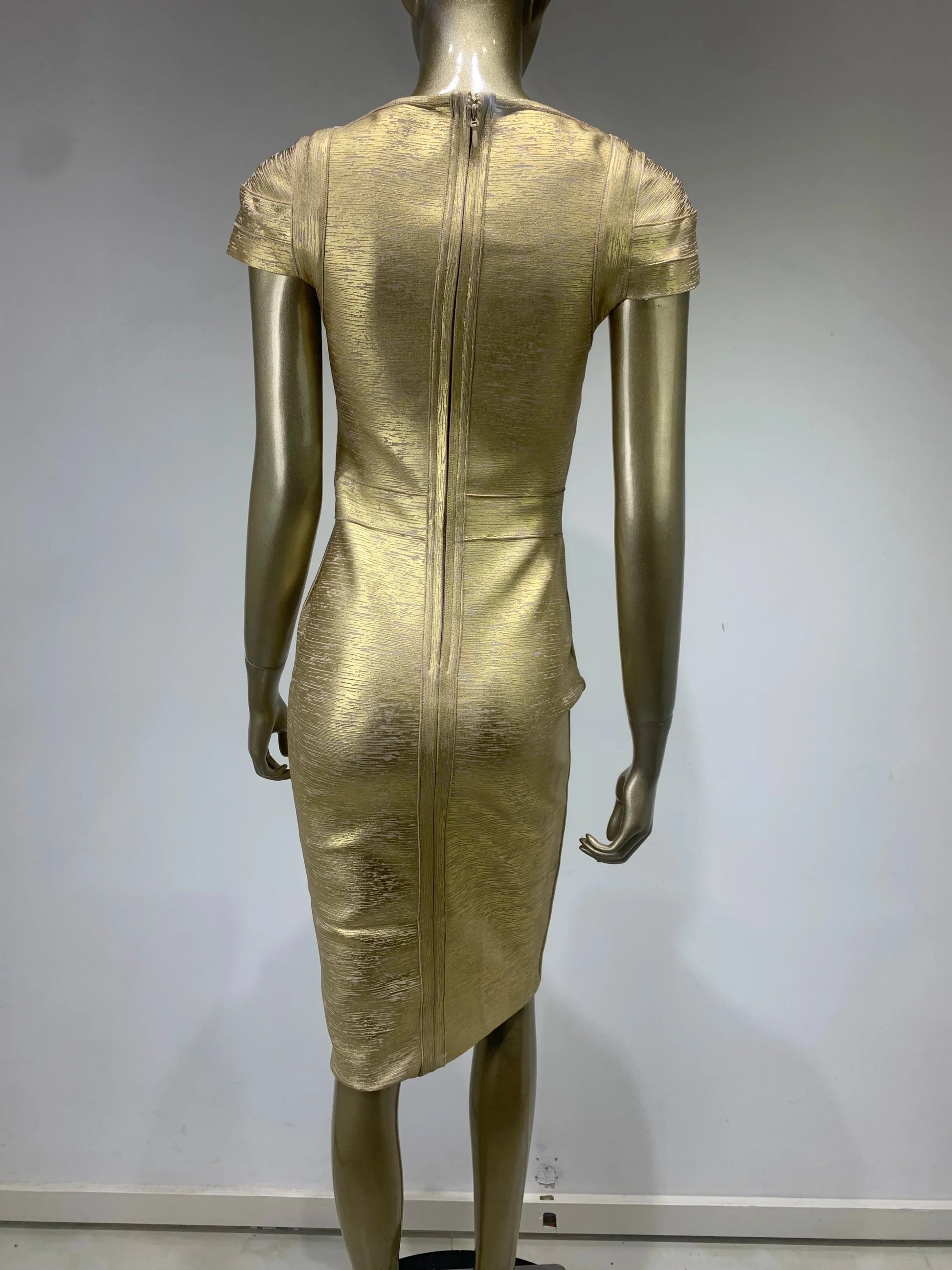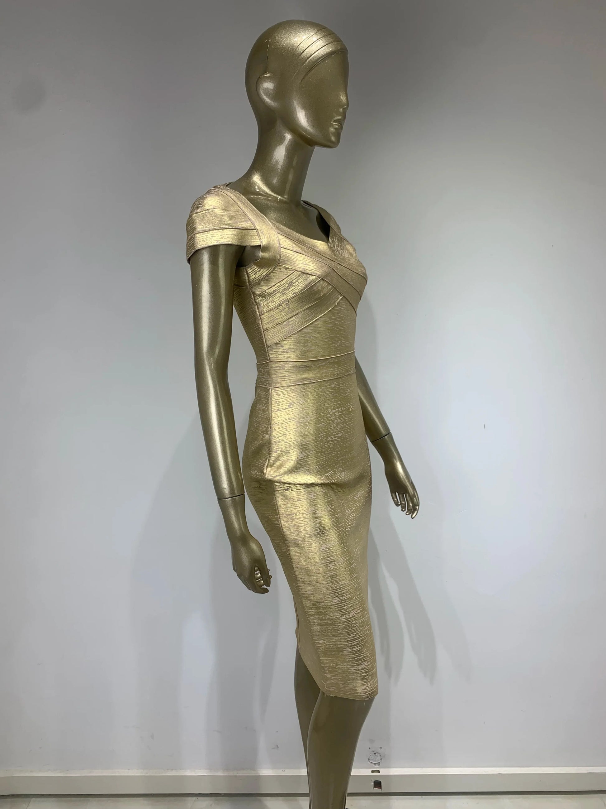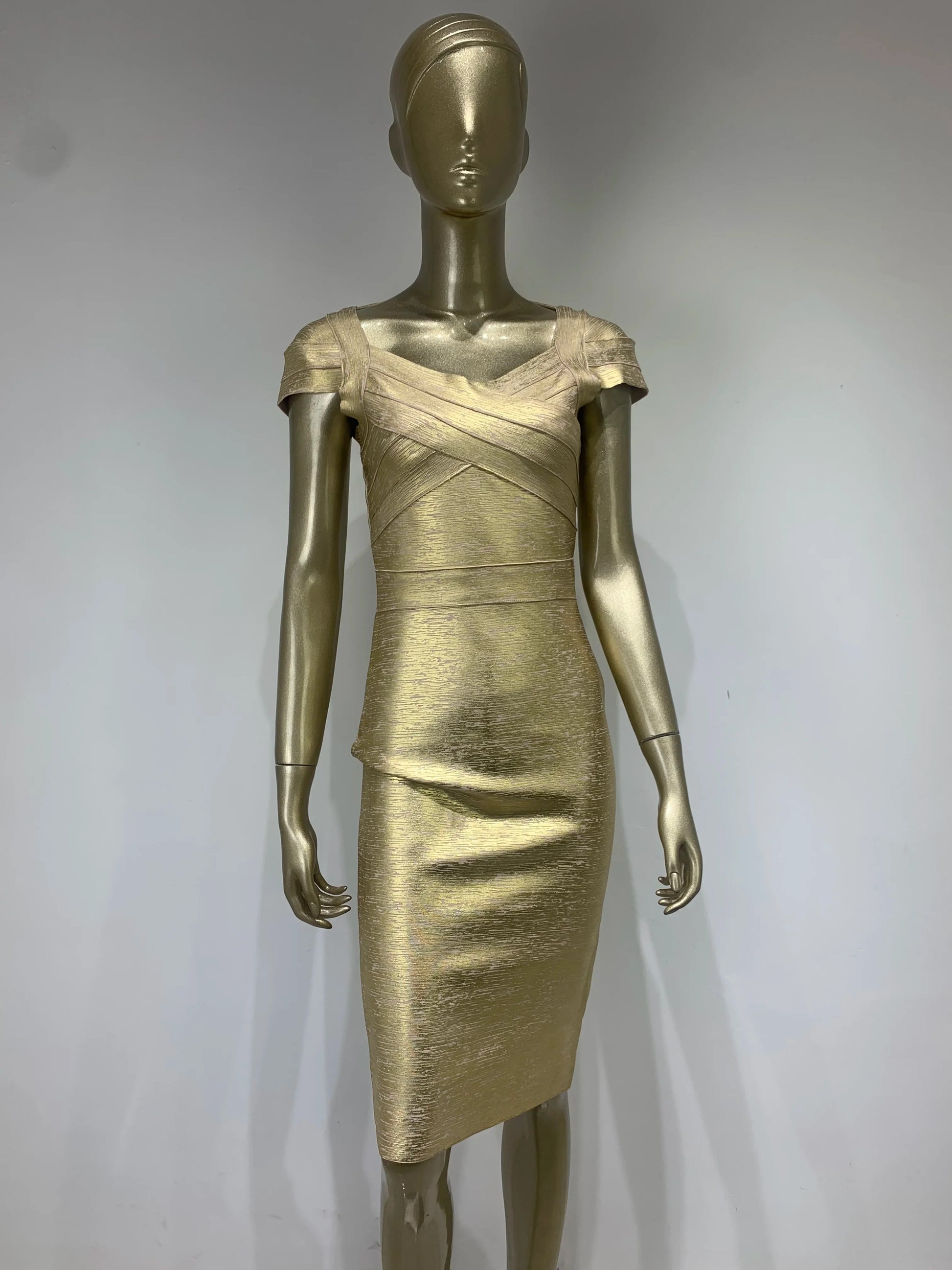 qgtao Hot Sale Summer Fashion Women Sexy Square Collar Bronzing Gold Midi Bodycon Bandage Dress 2024 Elegant Evening Club Party Dress