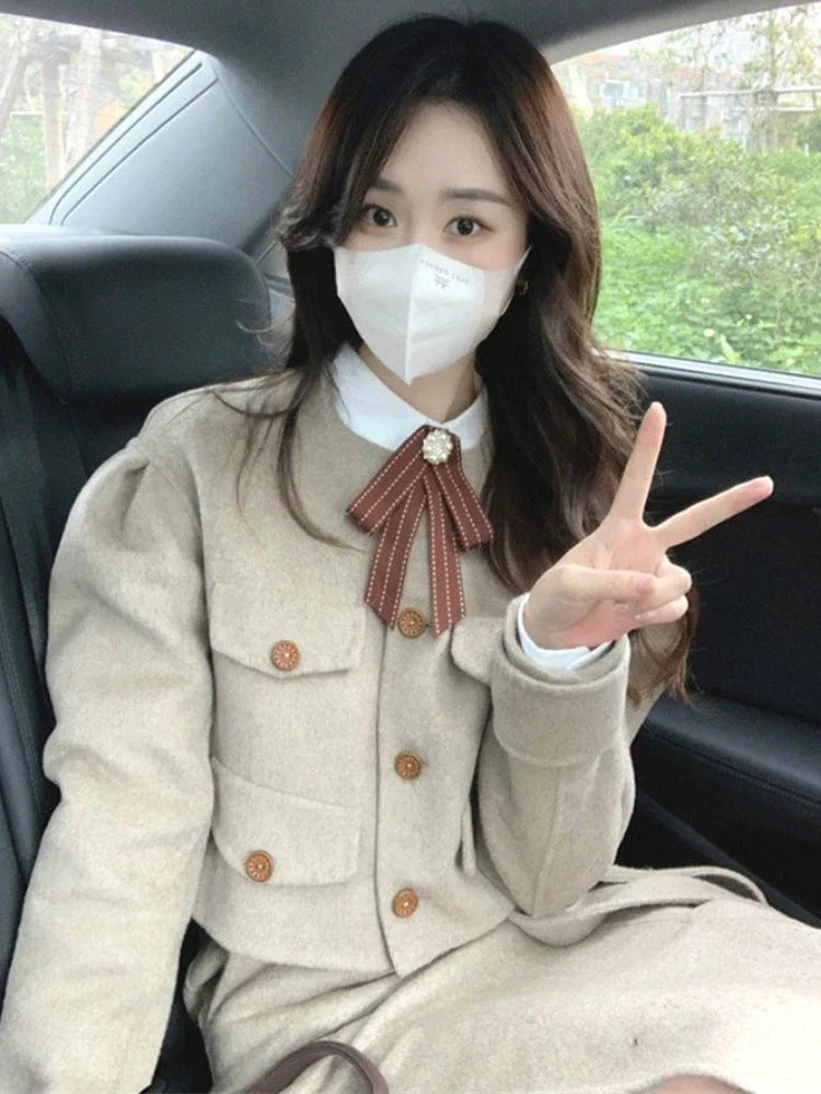 qgtao Japan Uniform Two Piece Set Women Winter Warm Cropped Coat Elegant Midi Skirt Set Fairy Sweet Vintage Casual Party Skirt Set New