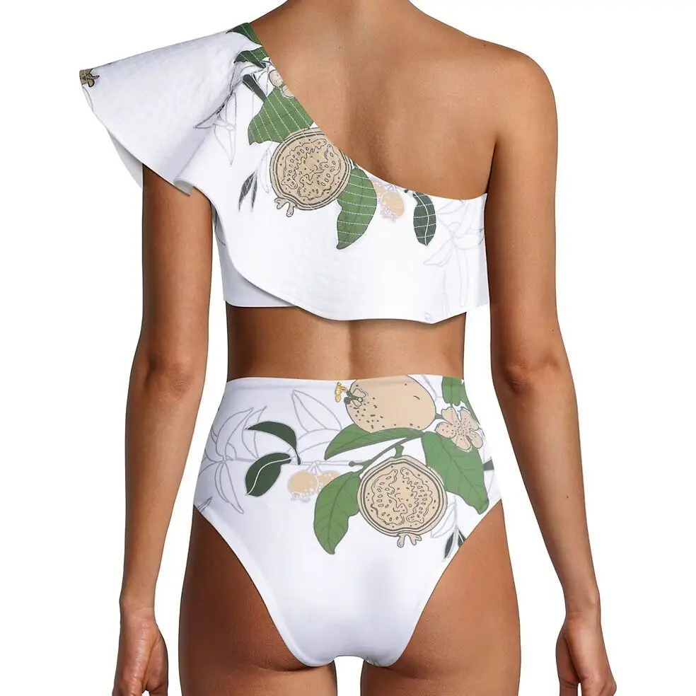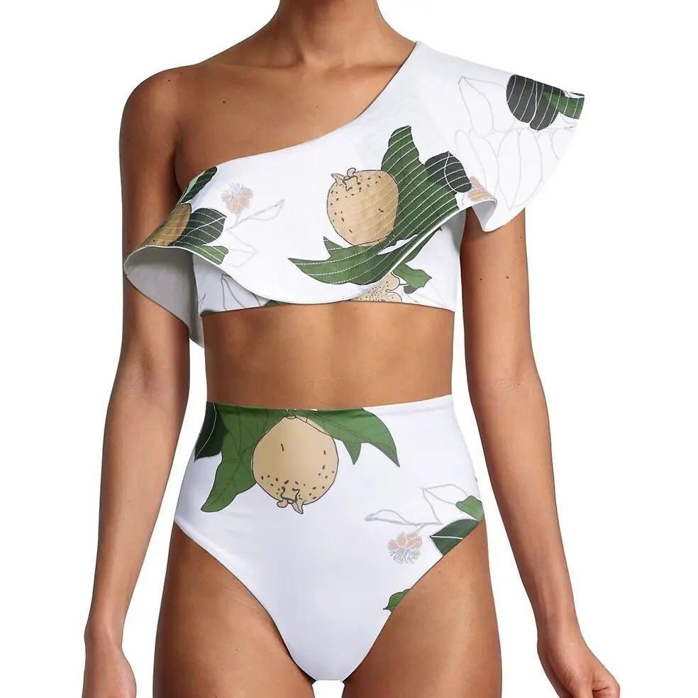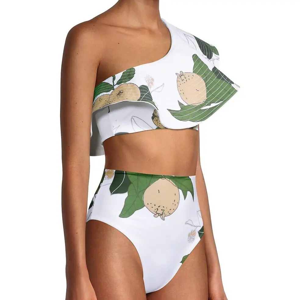 qgtao One-shoulder Ruffled Swimsuit Plus Size Tankini Women Swimming Suits Swimwear Patchwork 2022 Luxury Shorts Bourkini