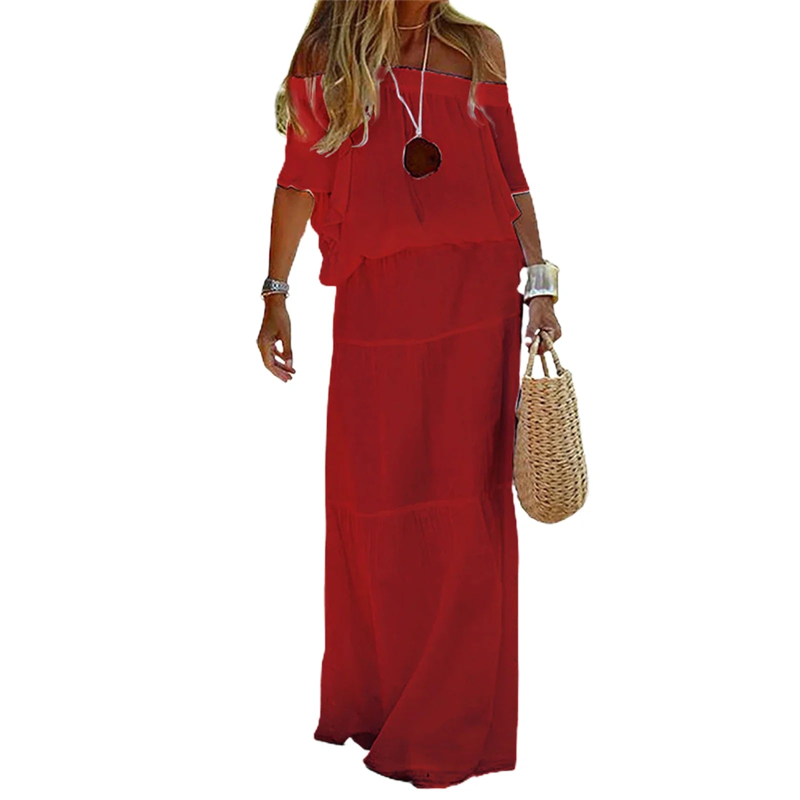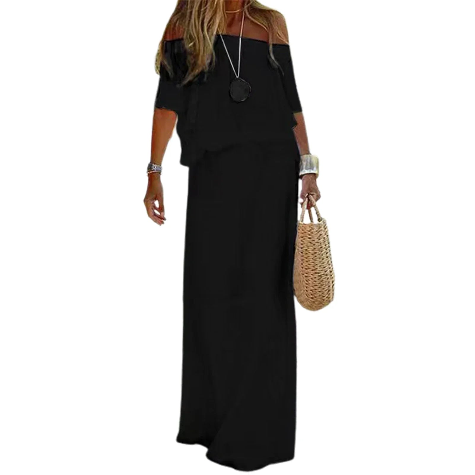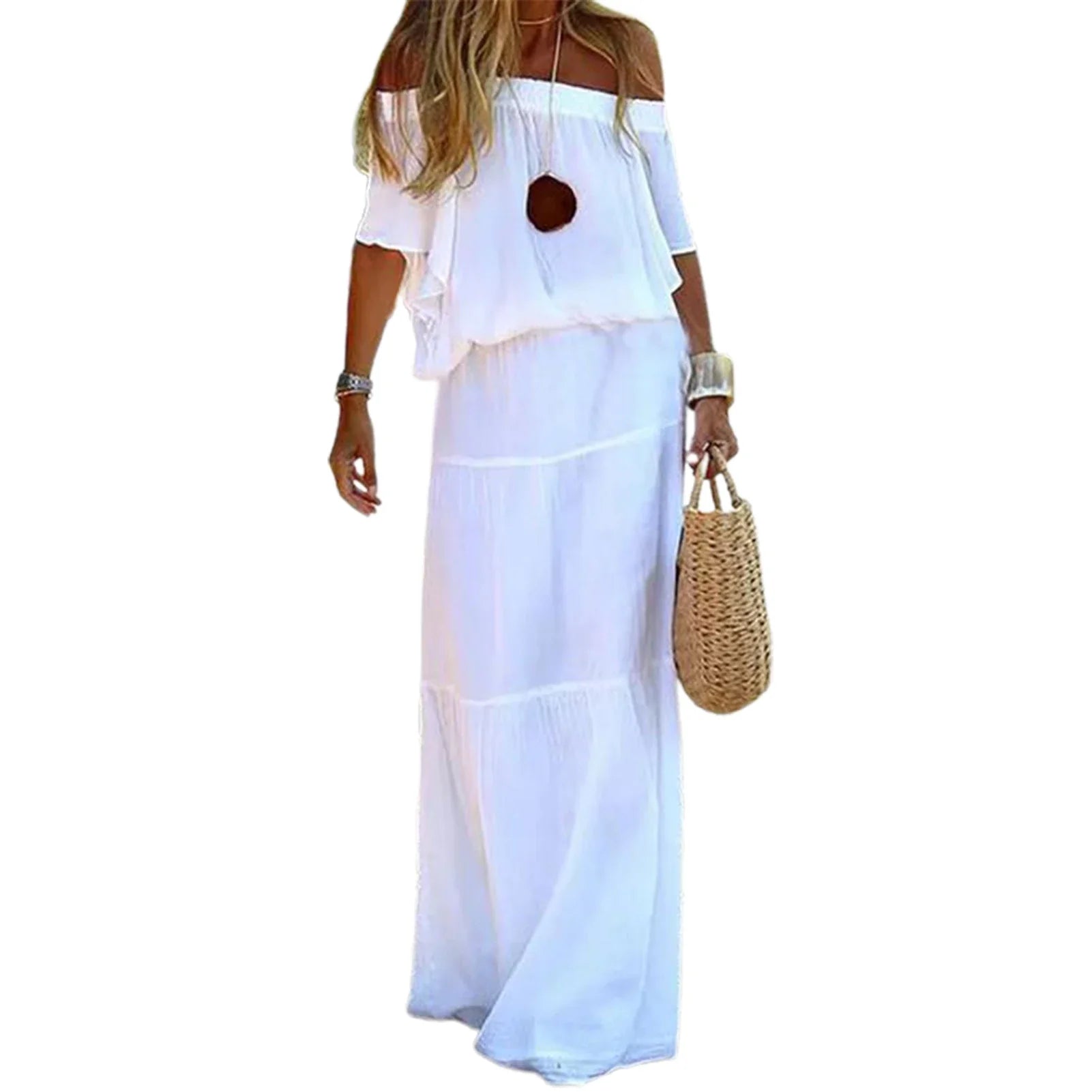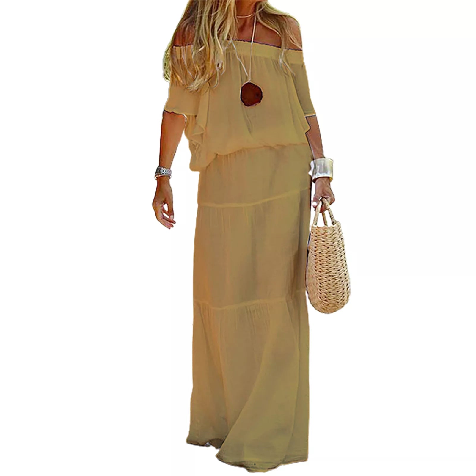 | Description: Off shoulder design makes this maxi dress more very simple and fashionable. Solid color and short sleeve design makes you look more sweet and elegant in daily life. Item Name: Dress