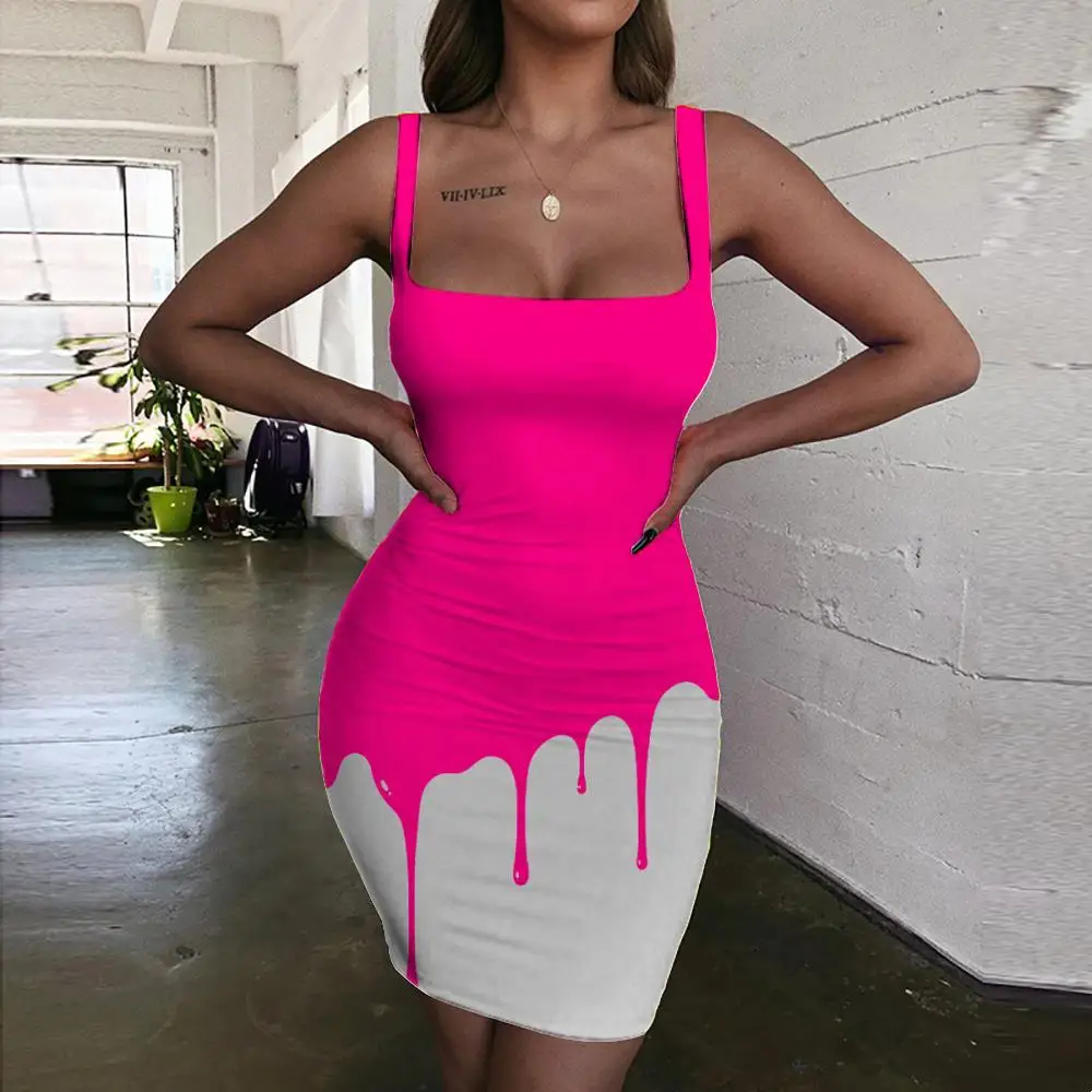 qgtao Pigment Dress Women Graffiti Ladies Dresses Rose Pink Bodycon Dress Street Sundress Womens Clothing Party Vintage Beach