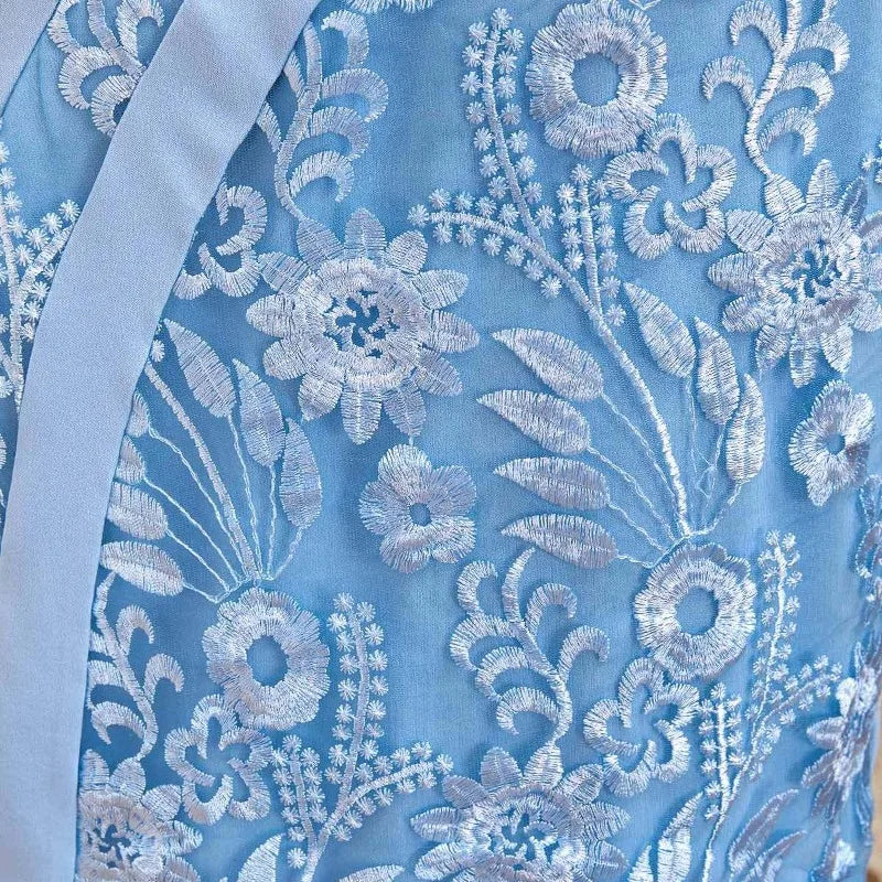 qgtao Plus Size Women Midi Dress Elegant Embroidered Lace Splicing Casual Short Sleeve Crew Neck Women's Elegant Social Dresses