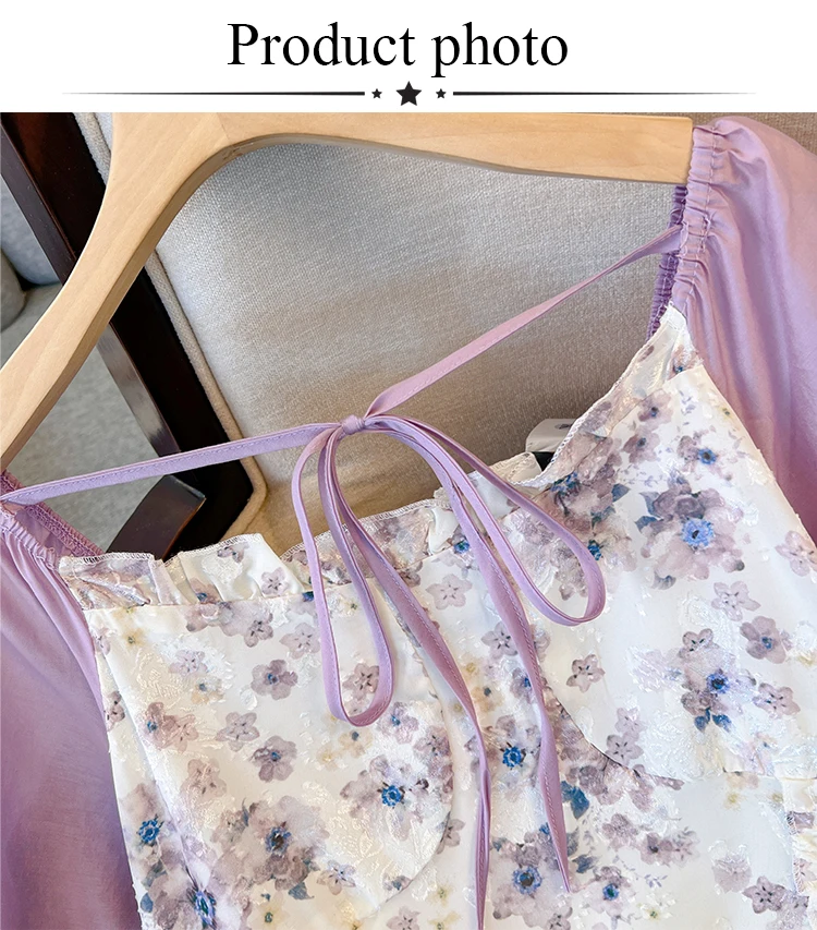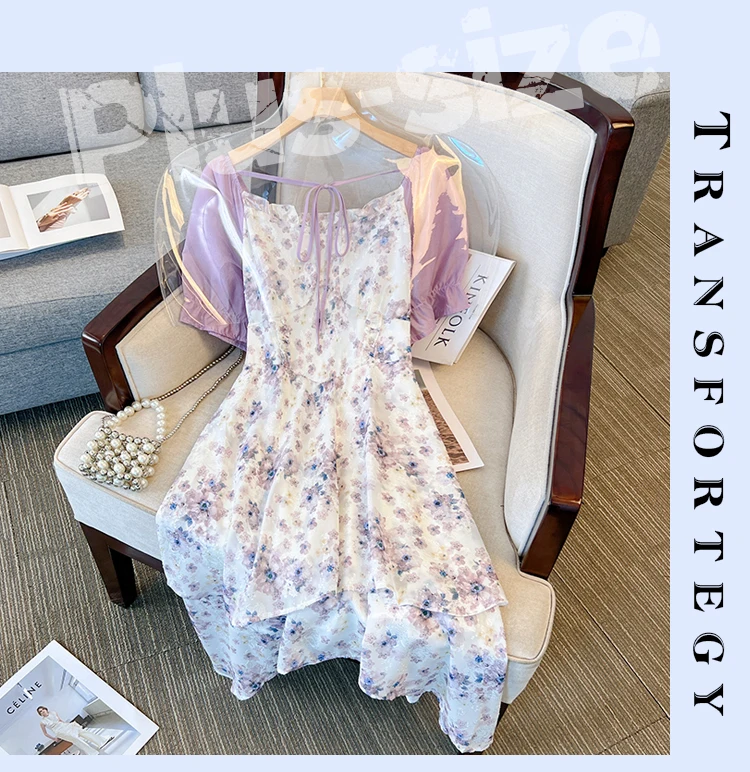 qgtao Plus-size women's Summer casual dress Halter Strap Layered hem Design Polyester knee-length party dress Comfortable floral dress