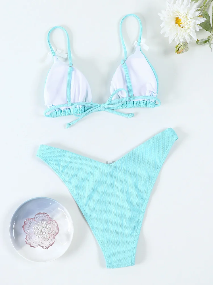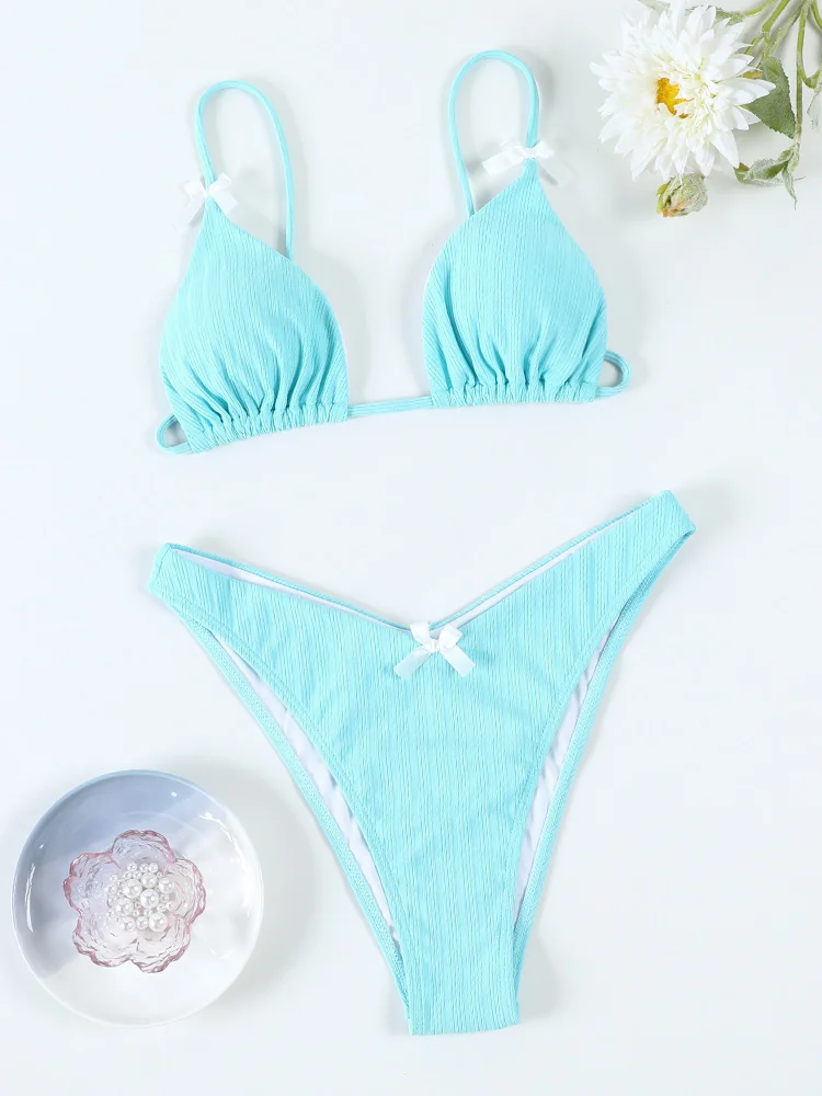 qgtao Sexy Bikinis Triangle Swimsuit Women Low Waist Bikini Set Push Up Beachwear Female Bow Biquini Micro Thong Bathing Suit