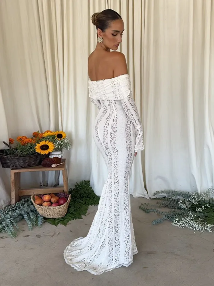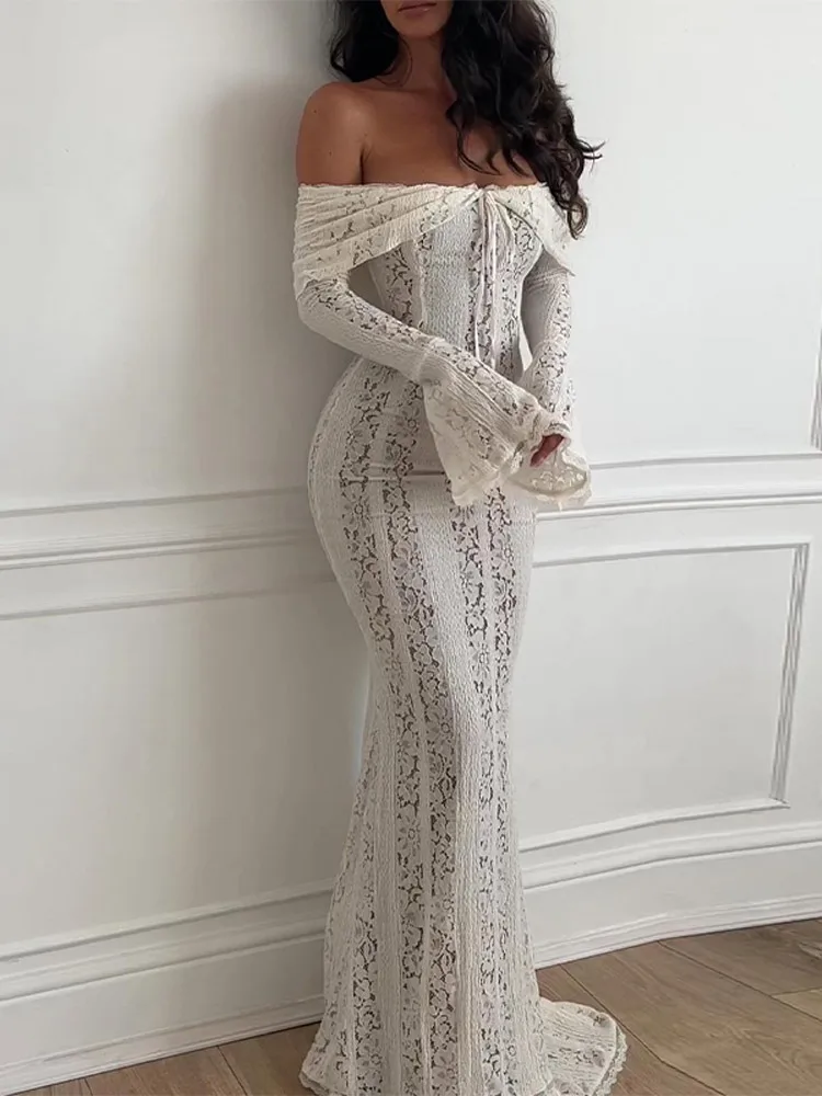 qgtao  -  Sexy Hollow Out Women See-through Lace Up Party Dress Female Flared Sleeves Chest Wrapped Dresses 2024 Summer Lady Seaside Gowns