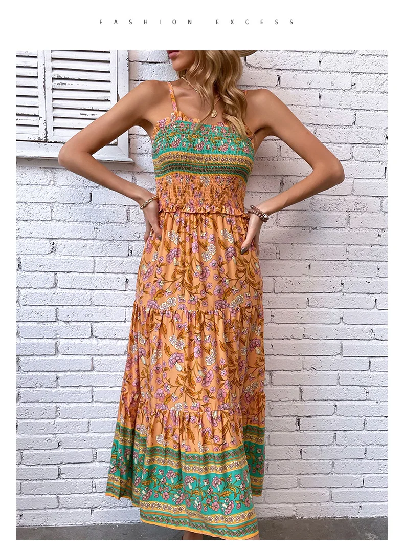 qgtao Sexy Long Dresses For Women Fashion Backless Ruffle Boho Beach Slip Dress Summer Floral New In Dresses Women Clothing 2024